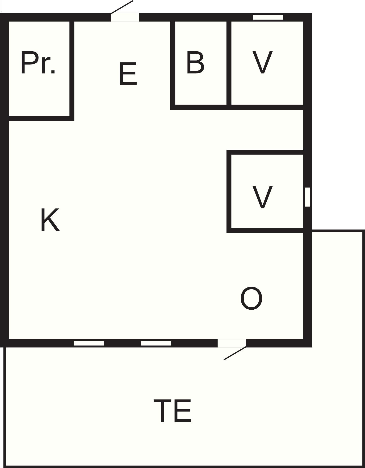 Køkkenafd.: El-komfur, køleskab m/frostboks, emhætte, kaffemaskine, opvaskemask., vaskemaskine
