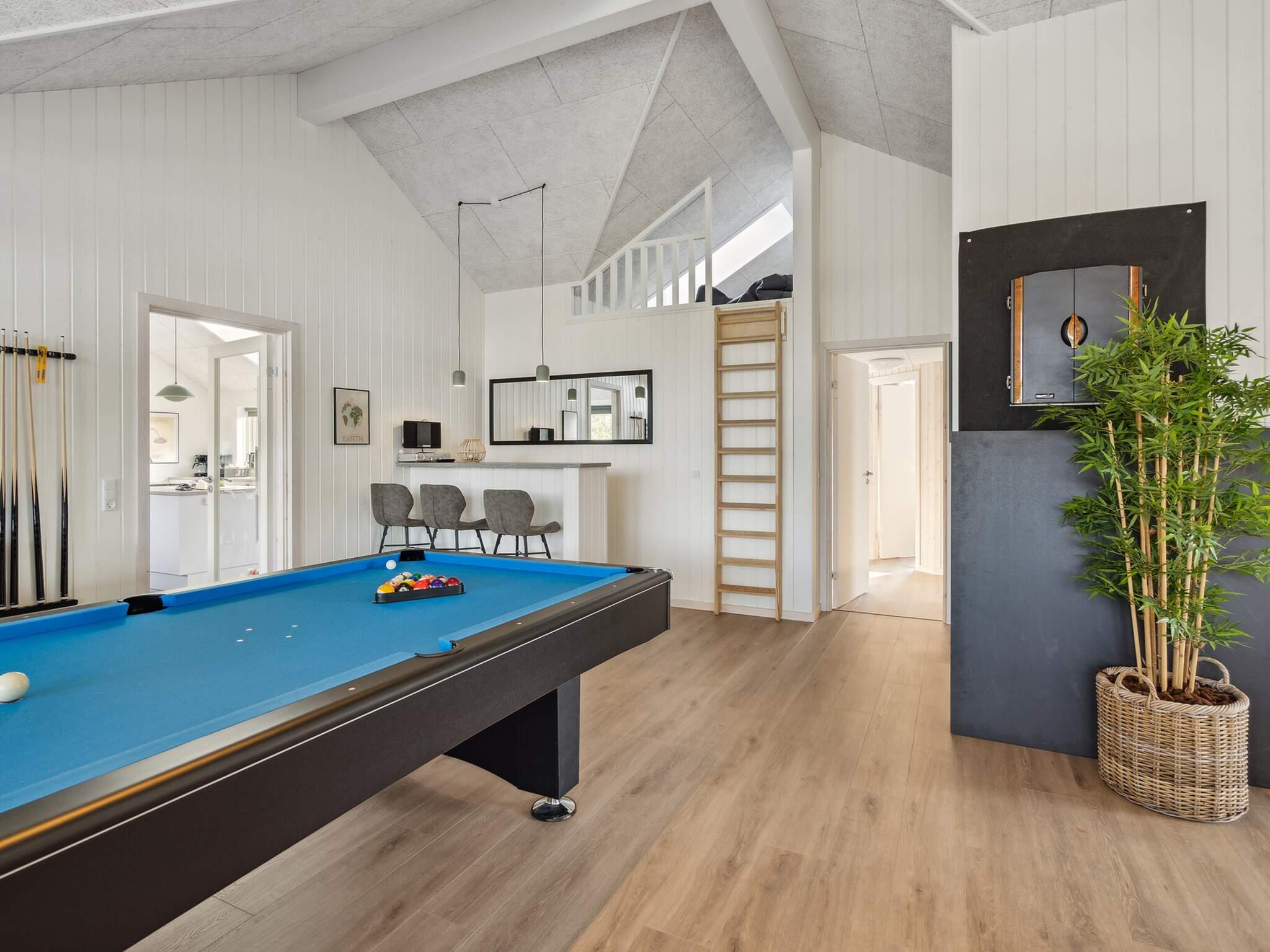 Husets store trækplaster er det imponerende aktivitetsrum, som er skræddersyet til underholdning for både store og små. Her kan I dyste i billard, bordfodbold, dart og bordtennis – alt sammen i samme rum. Og når konkurrencerne skal fejres, kan I tage en pause ved husets egen bar, der gør dette aktivitetsrum til det perfekte sted for sjove og mindeværdige aftener. Derudover byder huset på en skøn poolafdeling med egen pool og vandrutsjebane, samt afslappende faciliteter som sauna og spabad, hvor I kan lade op efter en aktiv dag.