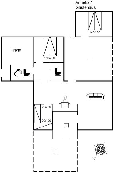 Charmerende sommerhus beliggende på en lukket grund med plads til boldspil og leg. Til huset hører et anneks, hvor 2 af sovepladserne befinder sig. Bemærk desuden, at badeværelset ligger med 1 trin i niveauforskel til resten af huset og at der et lille niveauforskel fra gangen ind til det ene soveværelse.