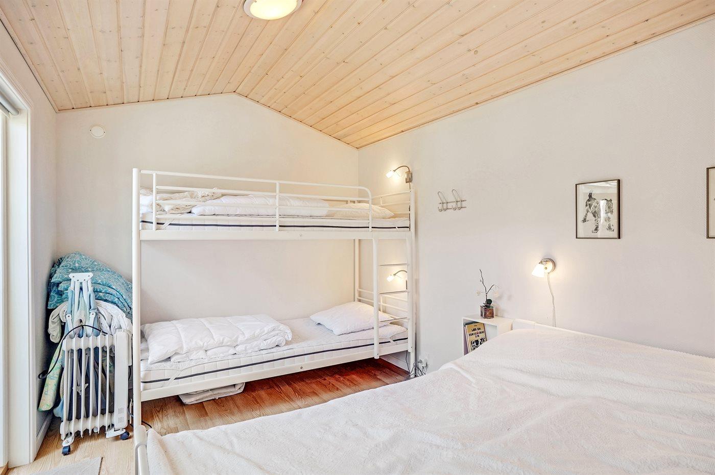 Der er i alt 3 soveværelser. Sovepladserne fordeler sig på: 4 sovepladser i dobbeltsenge. 2 sovepladser i enkeltsenge.- Derudover er der 1 stk. barneseng.