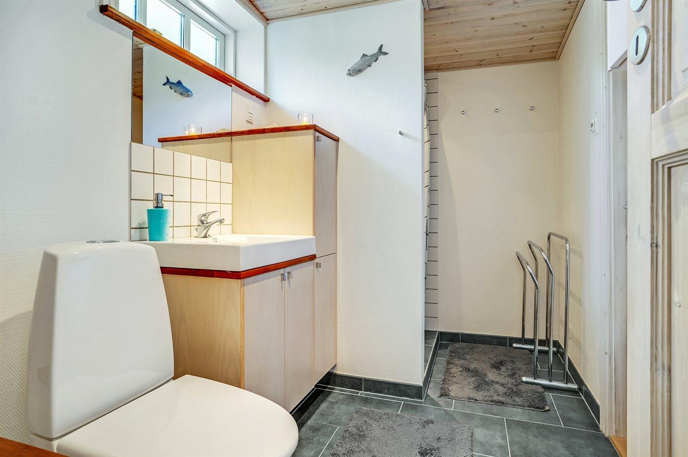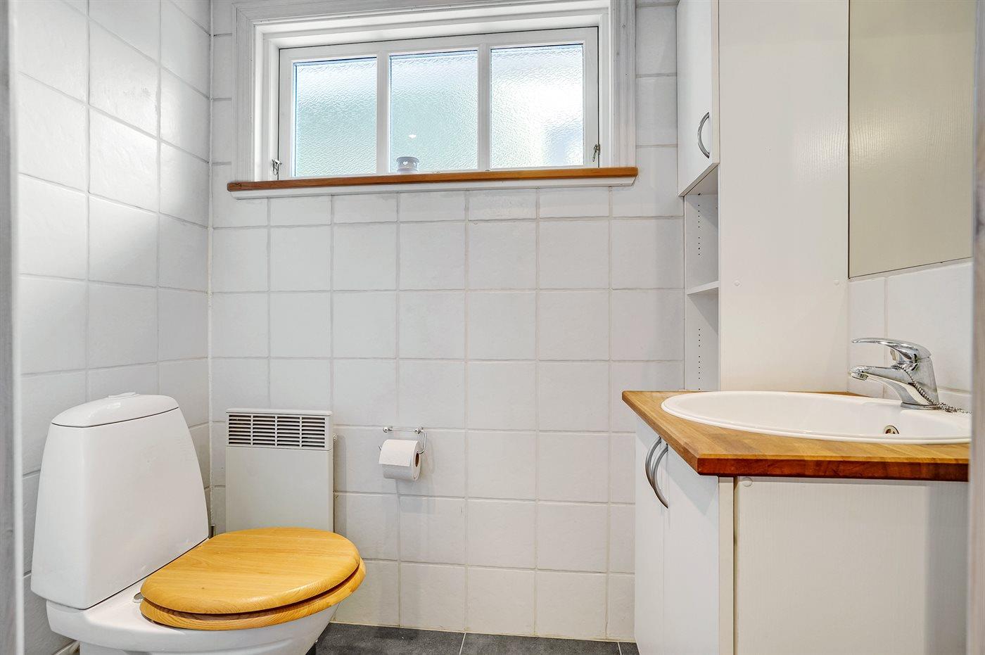 Der er 1 badeværelse med bruseniche og 2 toiletter, heraf 1 gæstetoilet. Der er gulvvarme på 1 badeværelse.