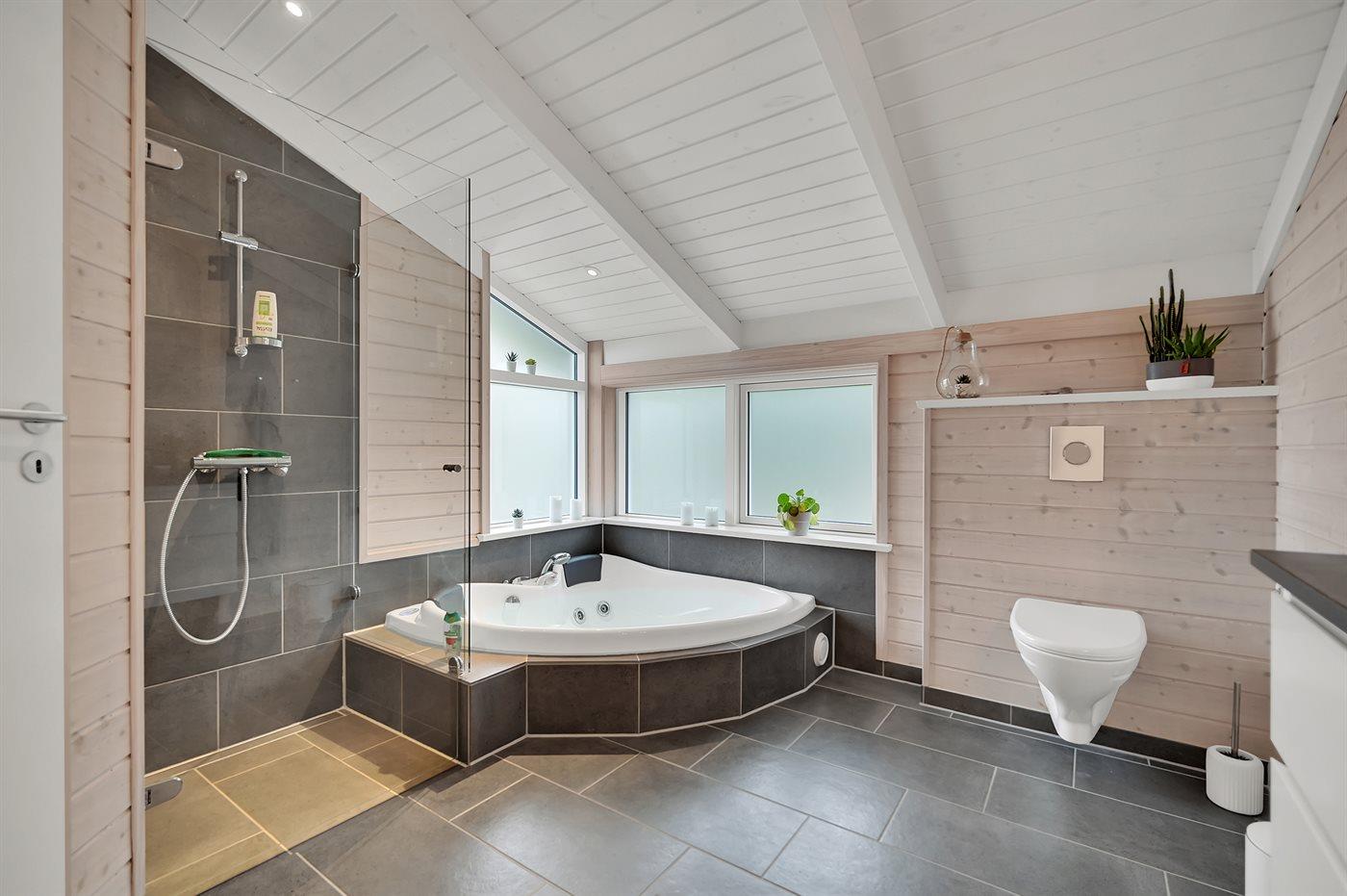 Der er 2 badeværelser med bruseniche og 2 toiletter. Der er gulvvarme på 2 badeværelser.