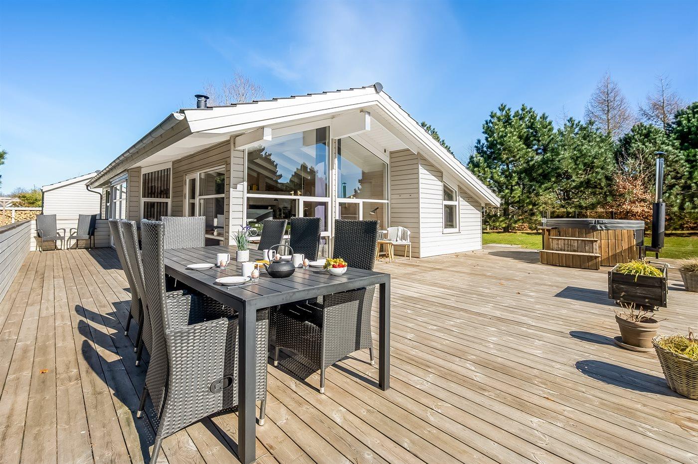 Sommerhuset egner sig til 8 personer. Ferieboligen er på 98 m² og er bygget i 2018. Det er ikke tilladt at medbringe husdyr. Ferieboligen er udstyret med energibesparende varmepumpe. Der er gulvvarme i alle klinkegulve. Ferieboligen har vaskemaskine. Tørretumbler. Frysekapacitet på 10 liter. Der er desuden brændeovn. Til de små er der 1 stk. barnestol.