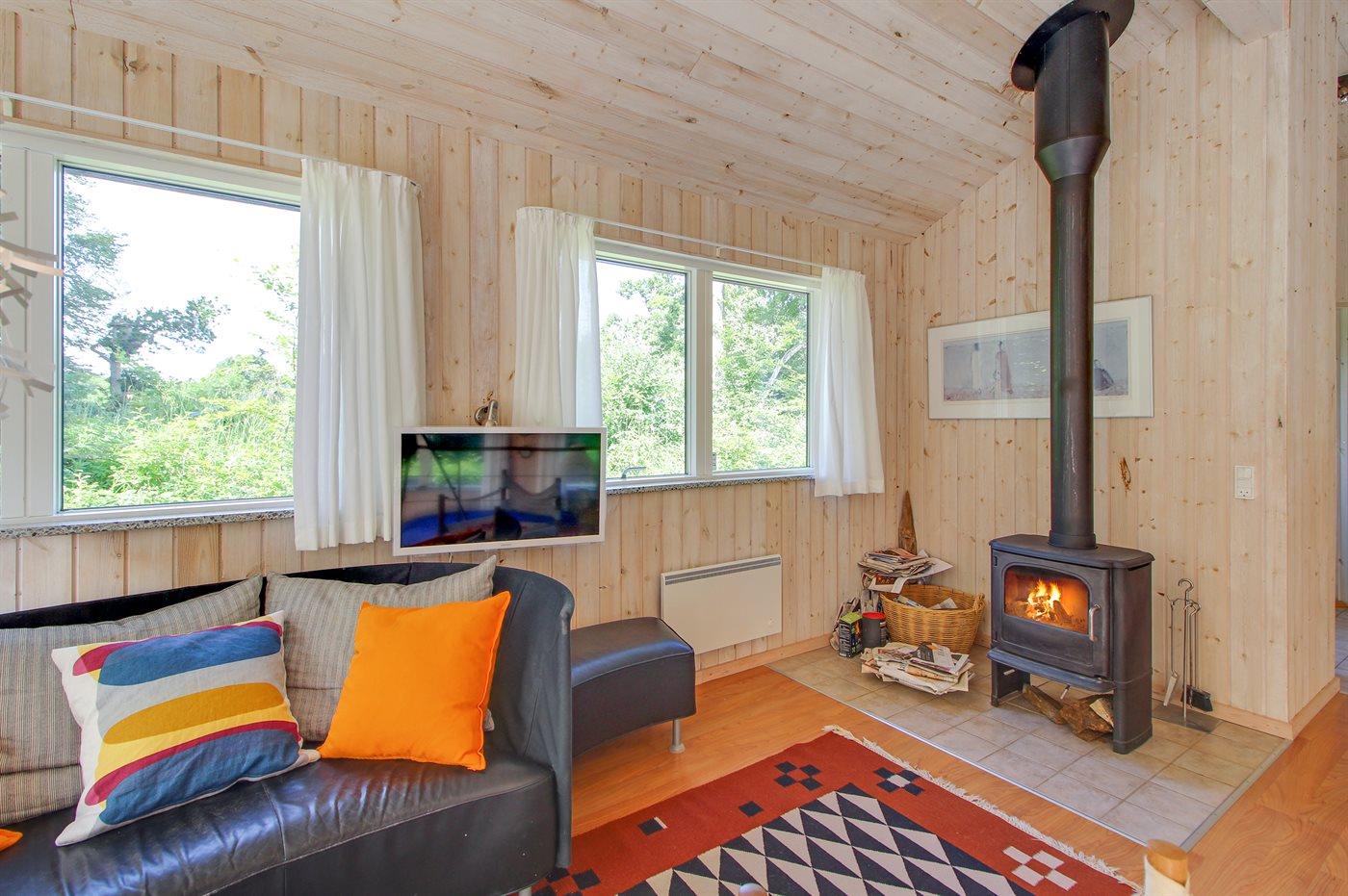 Sommerhuset egner sig til 6 personer. Ferieboligen er på 96 m² og er bygget i 2000. Det er tilladt at medbringe 1 husdyr. Ferieboligen er udstyret med energibesparende varmepumpe. Ferieboligen har vaskemaskine. Frysekapacitet på 95 liter. Der er desuden brændeovn.