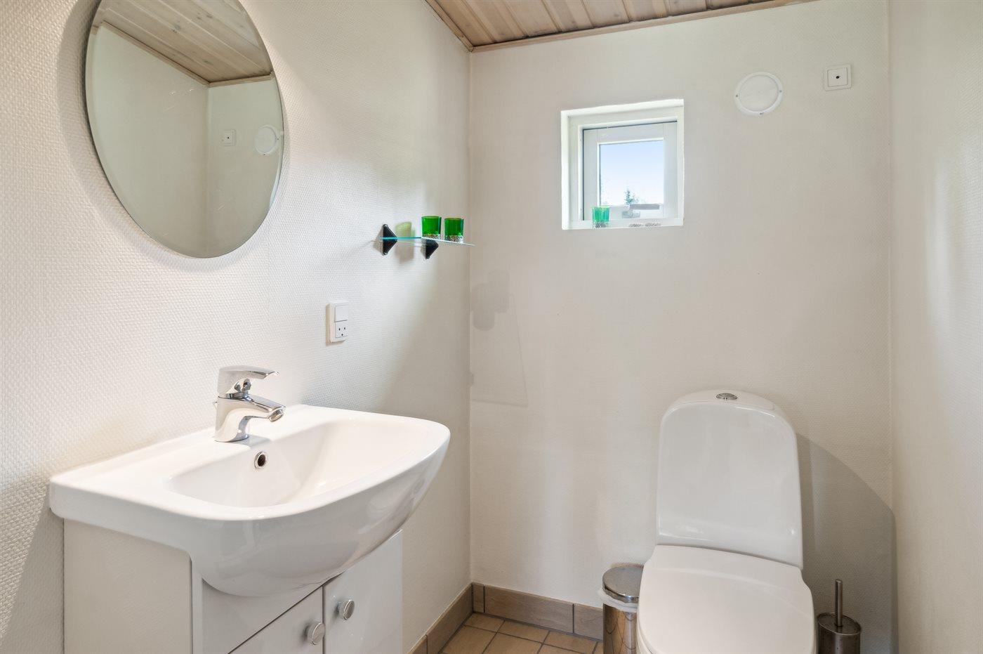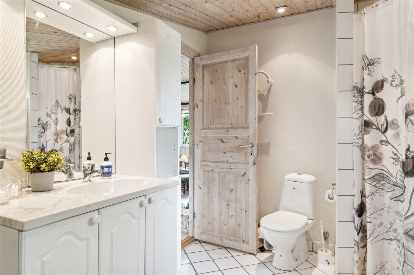 Der er 1 badeværelse med bruseniche og 2 toiletter, heraf 1 gæstetoilet. Der er gulvvarme på 1 badeværelse.