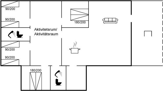 Med sine 4 gode værelser og den store hems, er der plads til hele familien med flere. Huset er indrettet med et godt og stort aktivitetsrum, som er strategisk placeret i den modsatte ende af husets opholdsstue, så alle kan nyde ferien uden at forstyrre hinanden.