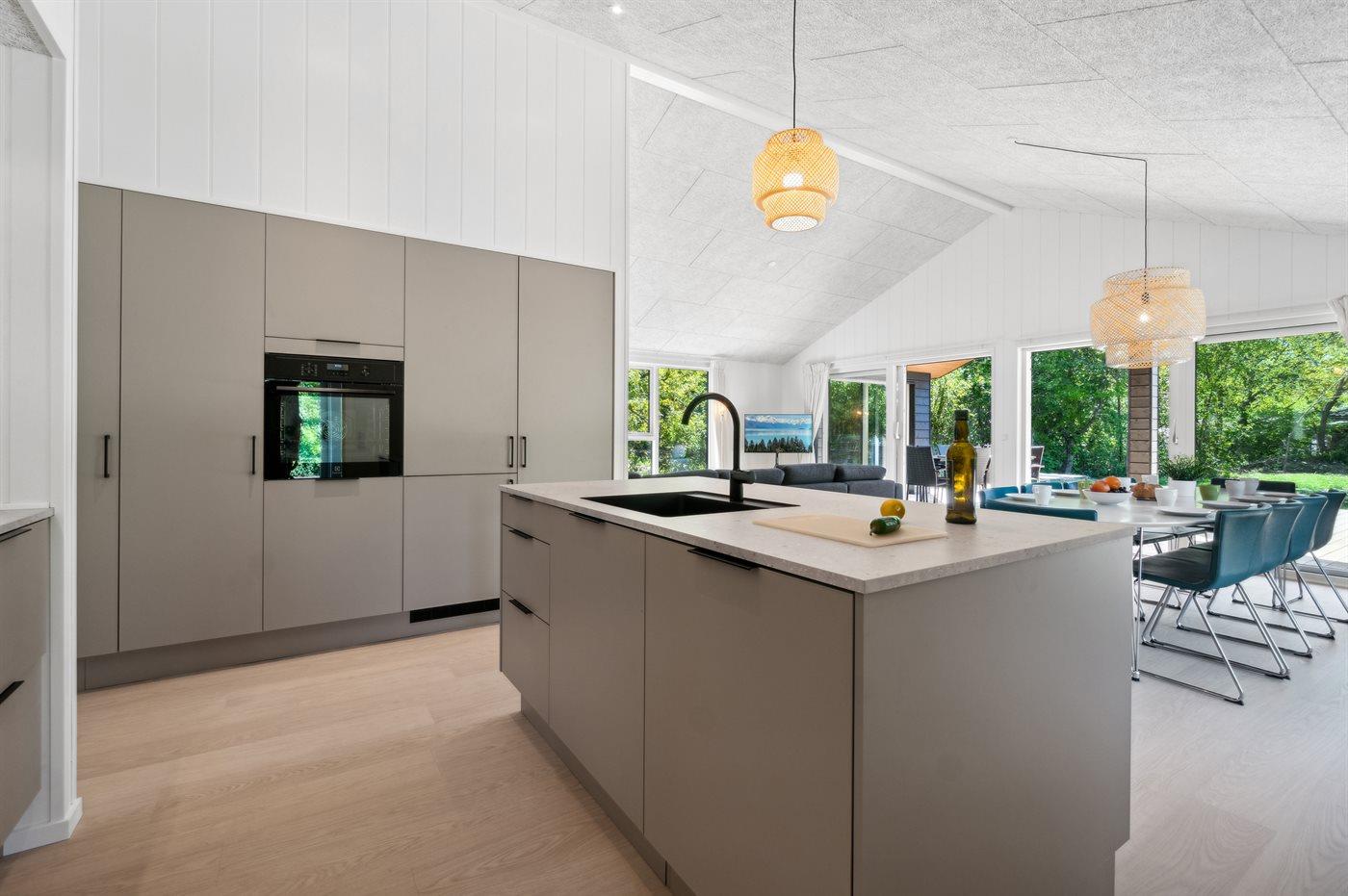 Køkkenet er udstyret med 2 køleskabe. Der er 4 induktionskogeplader, varmluftovn, mikrobølgeovn samt opvaskemaskine.