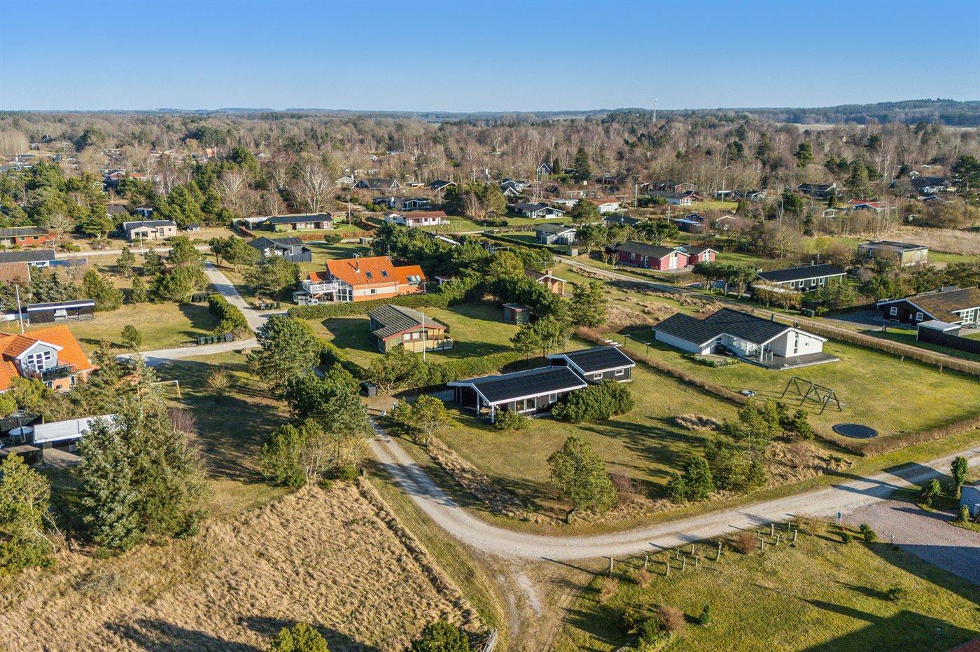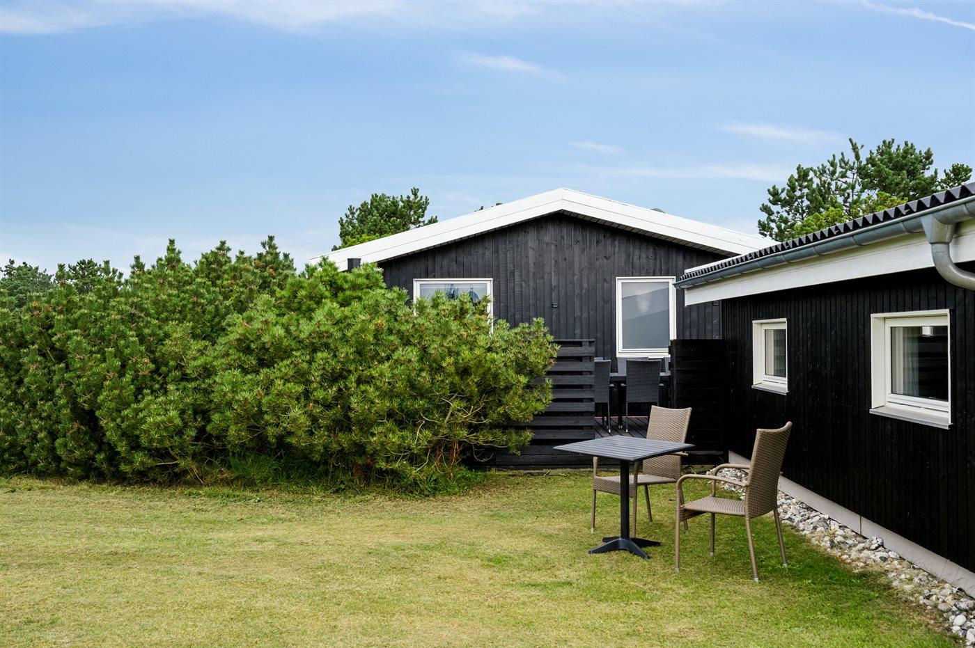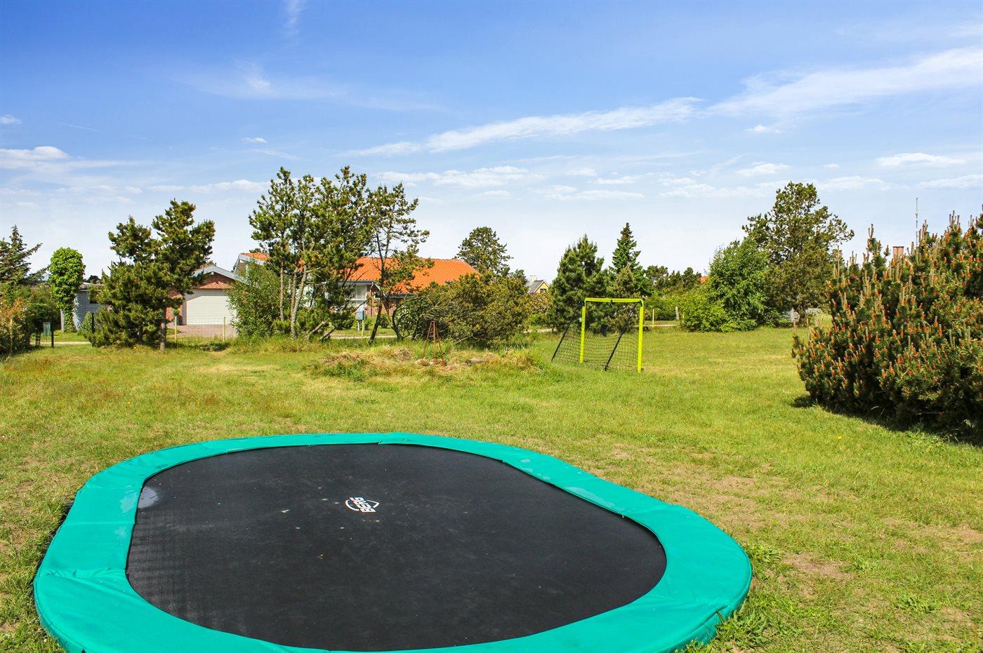 Ferieboligen er beliggende på en 1260 m² stor havegrund. Der er 200 m til havet. Nærmeste forretning er beliggende i en afstand af 1500 m. Til ferieboligen hører åbent terrasseareal. Desuden er der overdækket terrasse. Trampolin. Fodboldmål. Udendørs bruser. Grill til rådighed. Der er carport til rådighed. Parkering ved ferieboligen.