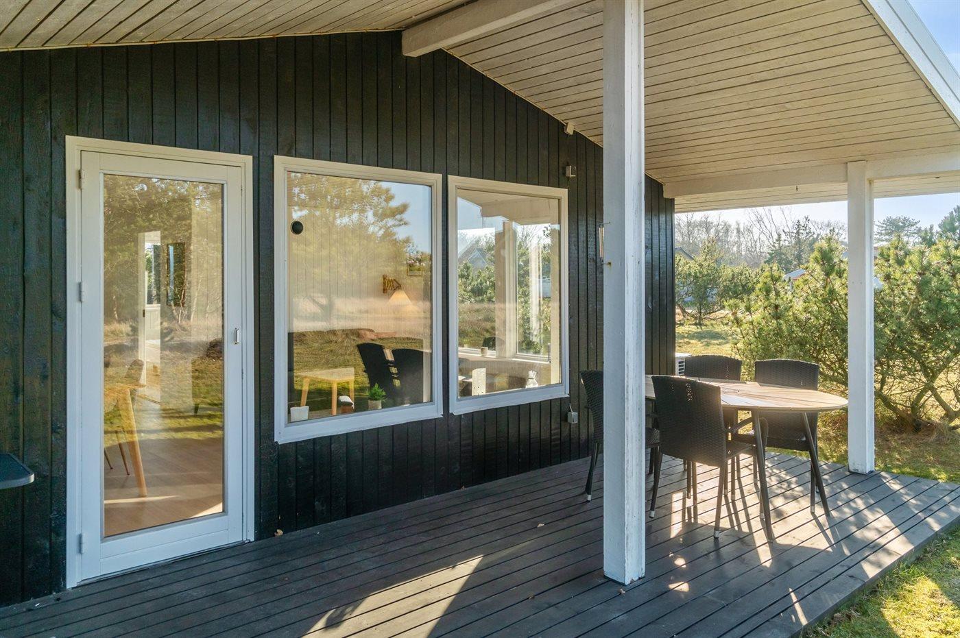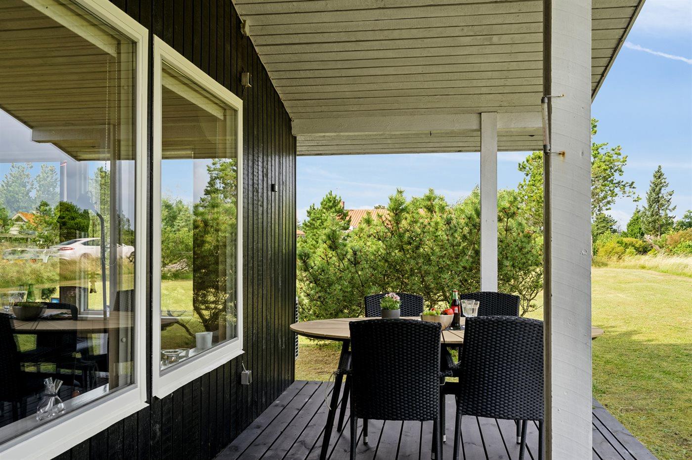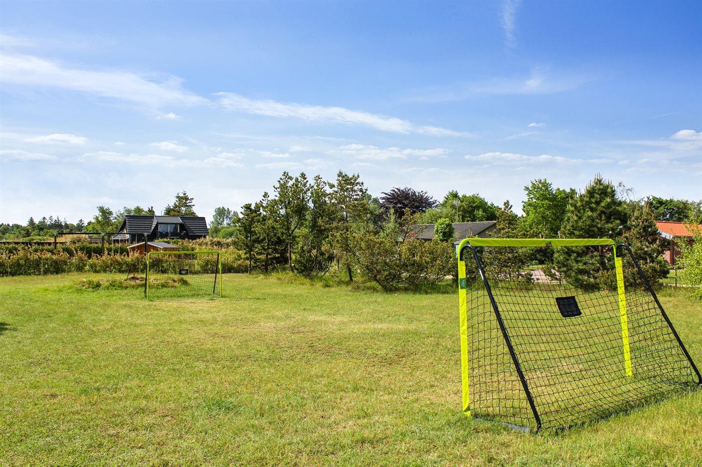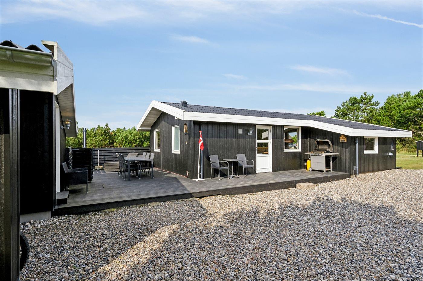 Ferieboligen er beliggende på en 1260 m² stor havegrund. Der er 200 m til havet. Nærmeste forretning er beliggende i en afstand af 1500 m. Til ferieboligen hører åbent terrasseareal. Desuden er der overdækket terrasse. Trampolin. Fodboldmål. Udendørs bruser. Grill til rådighed. Der er carport til rådighed. Parkering ved ferieboligen.