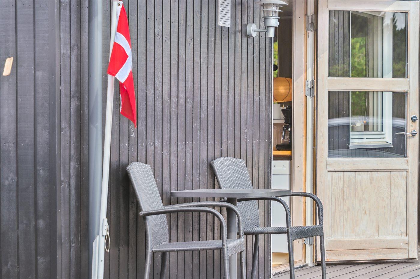 Sommerhuset ligger på en stor og skøn grund, som er oplagt til boldspil og leg med børnene. Fra de dejlige terrassearealer, der også er delvist overdækket, er det muligt at følge solen hele dagen, og man kan altid finde en krog med læ – her kan stilheden nydes til fulde.
