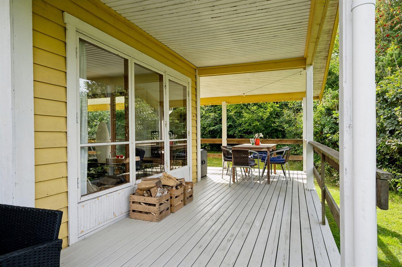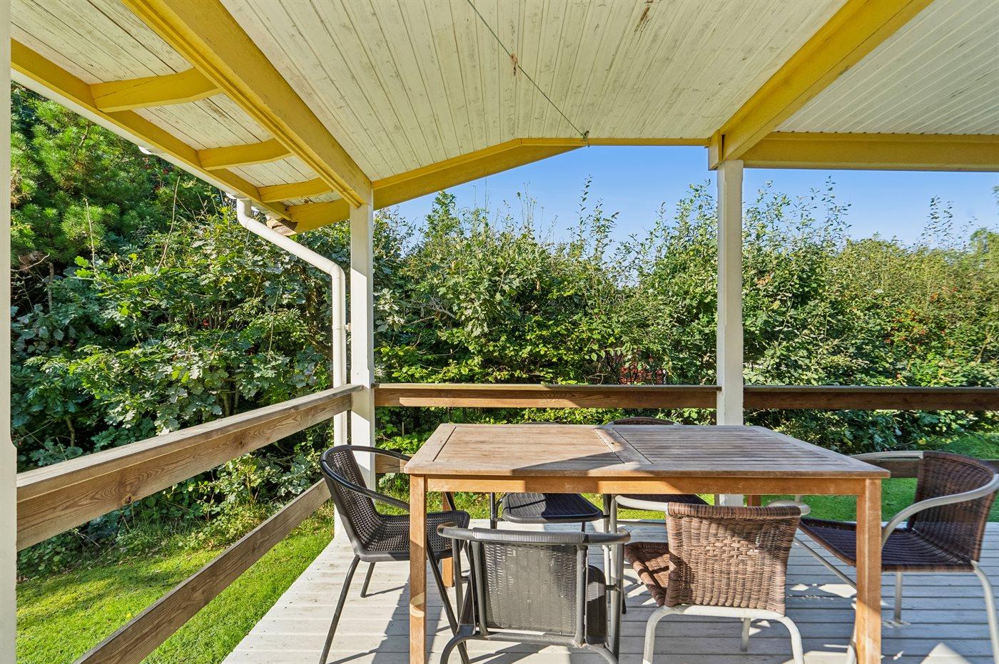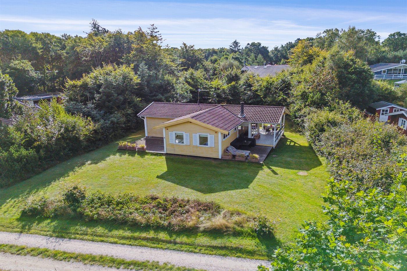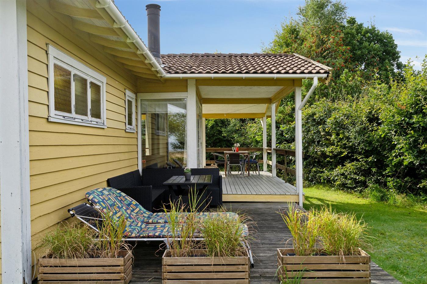Ferieboligen er beliggende på en 1279 m² stor havegrund. Der er 100 m til havet. Nærmeste forretning er beliggende i en afstand af 2500 m. Til ferieboligen hører åbent terrasseareal. Desuden er der overdækket terrasse. Gynge. Bålsted. Grill til rådighed. Parkering ved ferieboligen.