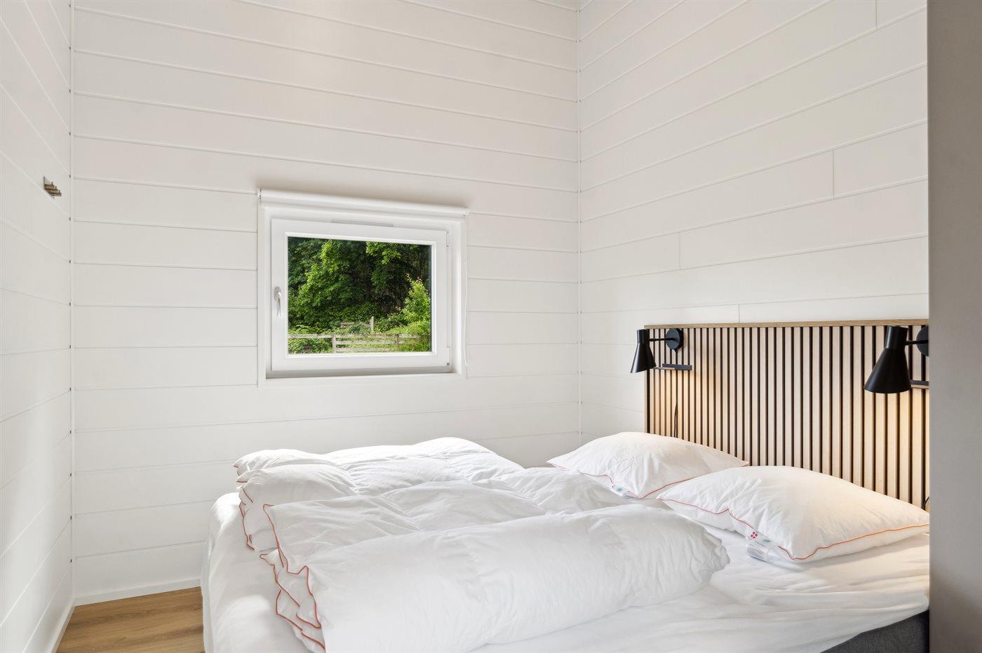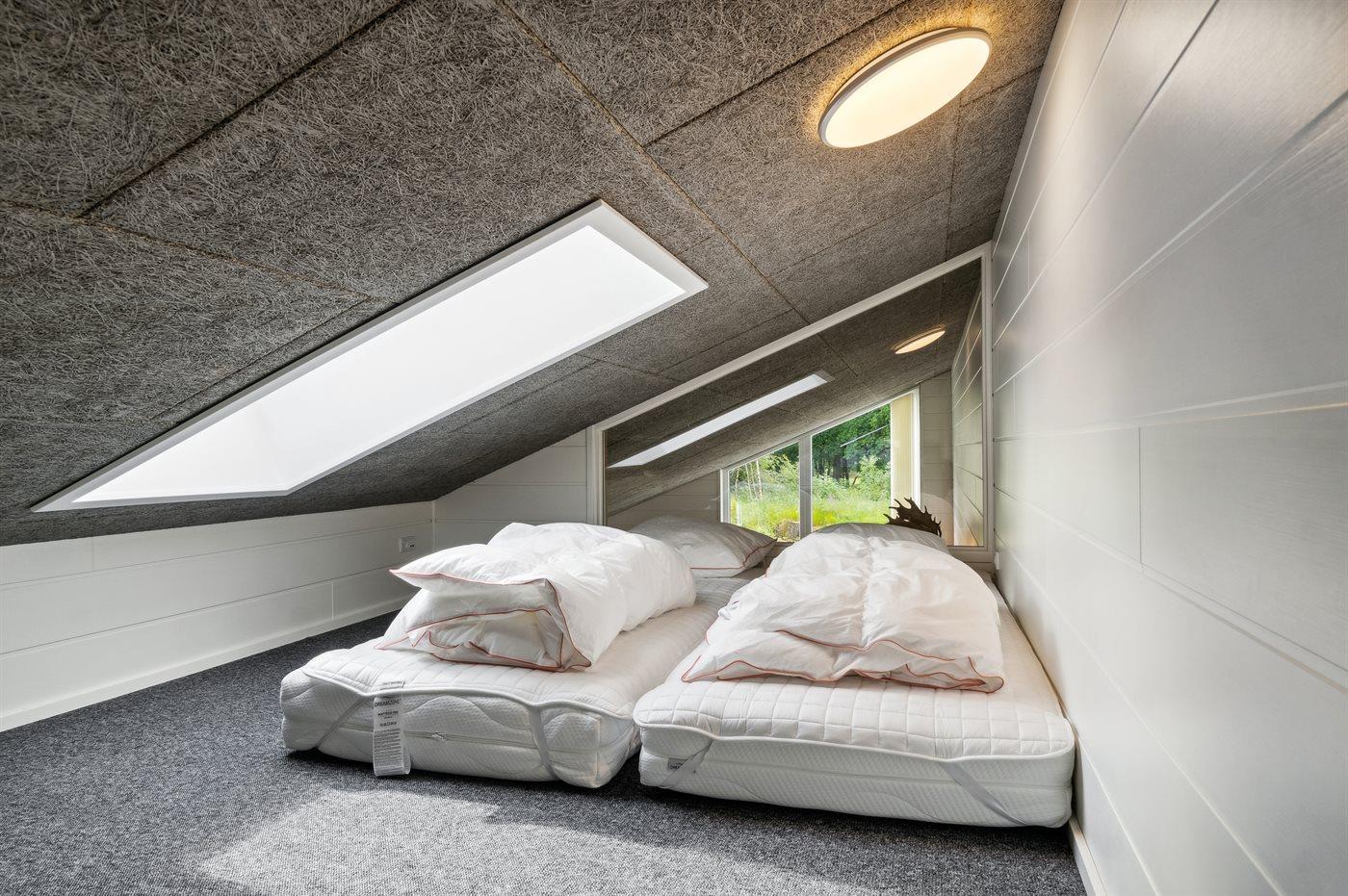 Der er i alt 7 soveværelser. Sovepladserne fordeler sig på: 8 sovepladser i dobbeltsenge. 2 sovepladser i enkeltsenge. 6 sovepladser i køjesenge. 6 sovepladser på madrasser. De 6 sovepladser på madrasser fordeler sig på 3 hemse. Derudover er der 2 stk. barnesenge.