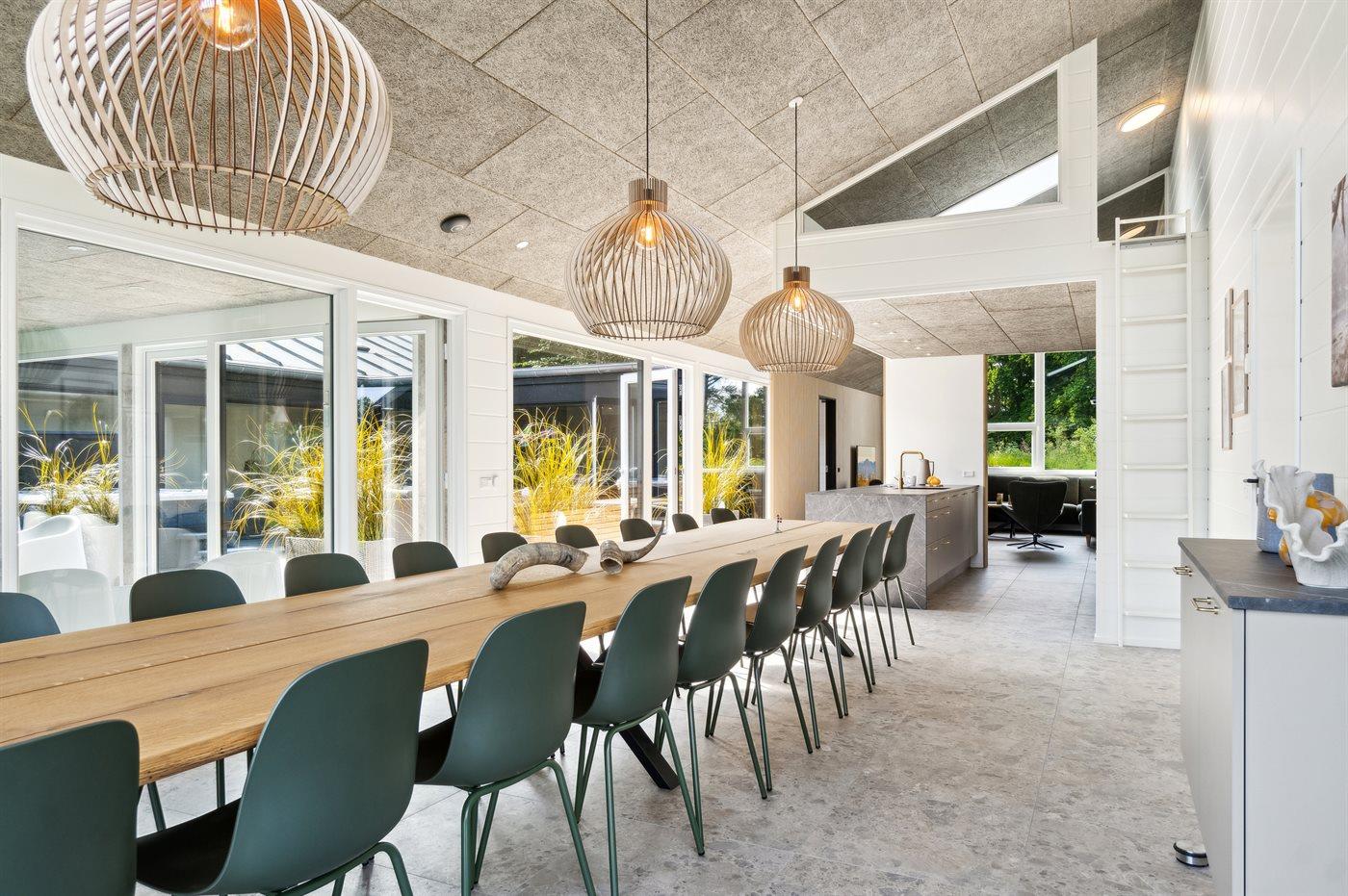 Sommerhuset egner sig til 22 personer. Ferieboligen er på 268 m² og er bygget i 2024. Det er ikke tilladt at medbringe husdyr. Ferieboligen er udstyret med 1 energivenlig luft til vand varmepumpe. Der er solvarme. Hele ferieboligen har gulvvarme. Ferieboligen har vaskemaskine. Tørretumbler. Frysekapacitet på 160 liter. Der er desuden brændeovn. Til de små er der 2 stk. barnestole.