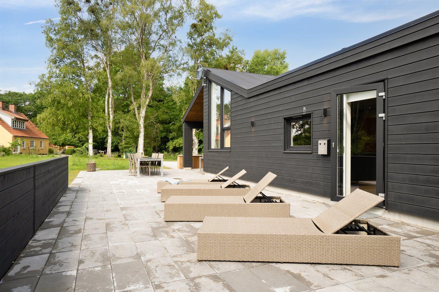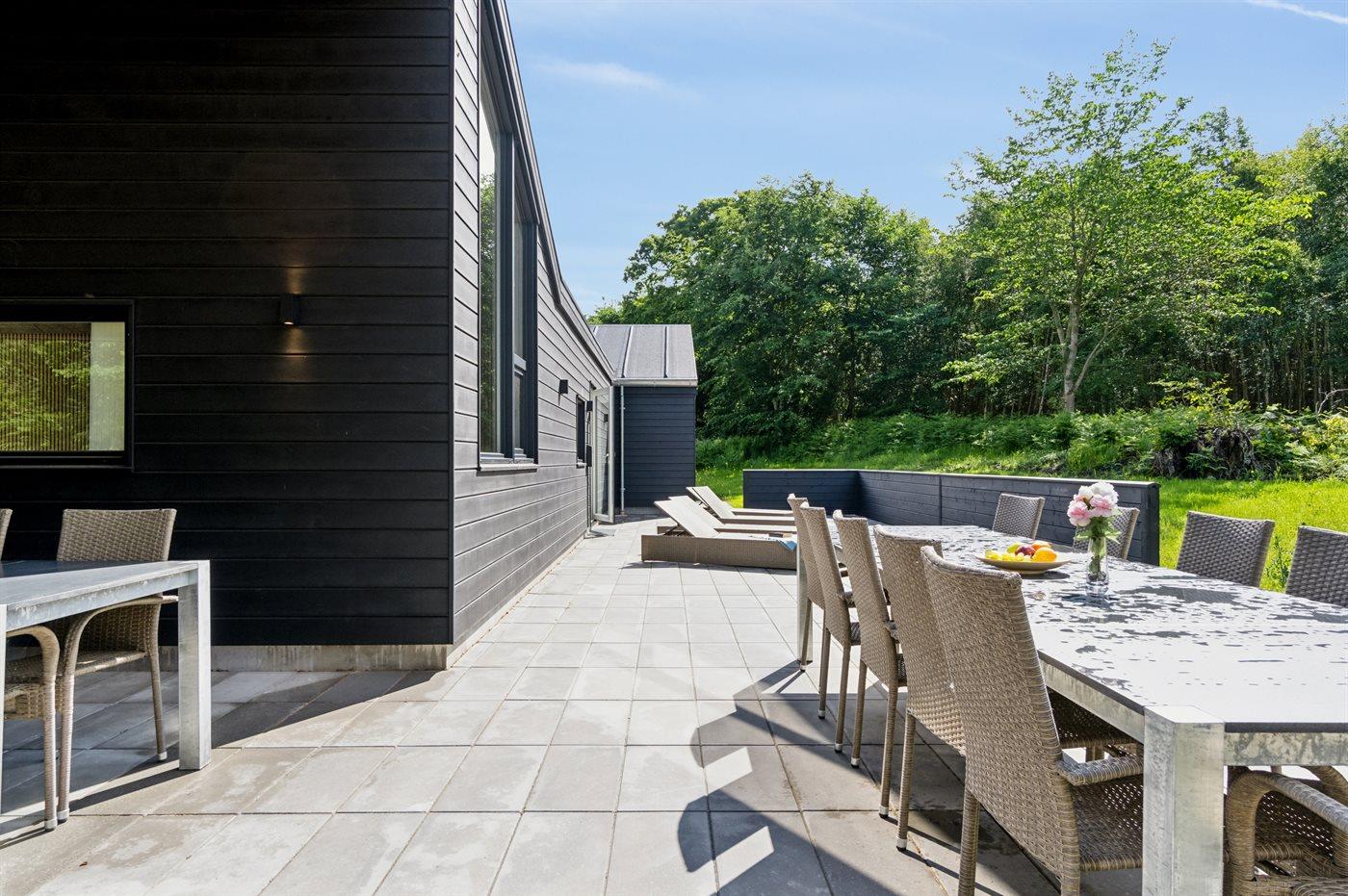 Ferieboligen er beliggende på en 2700 m² stor naturgrund. Der er 500 m til havet. Nærmeste forretning er beliggende i en afstand af 500 m. Til ferieboligen hører lukket terrasse. Gynge. Sandkasse. Trampolin. Legetårn. Rutchebane. Der er mulighed for at tilberede maden udendørs i udekøkkenet. Grill til rådighed. Der er installeret stik til opladning af elbil. Type 2 stik. Med 11 kW ladeeffekt. Parkering ved ferieboligen.
