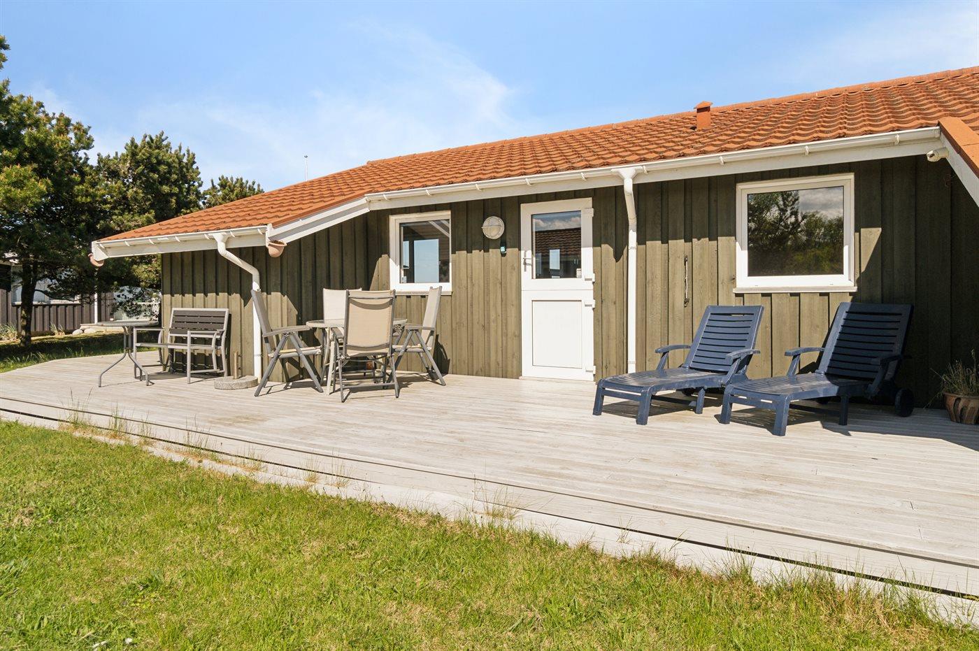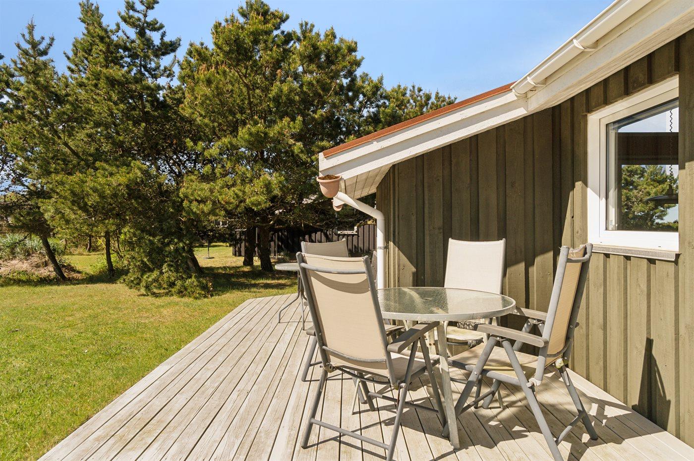 Sommerhuset ligger på en stor og skøn grund, som er nem at overskue, således man kan se på børnene mens disse hygger og leger. Fra den store, delvist overdækkede terrasse er det muligt at følge solen hele dagen, og man kan altid finde en krog med læ – her kan stilheden nydes til fulde.