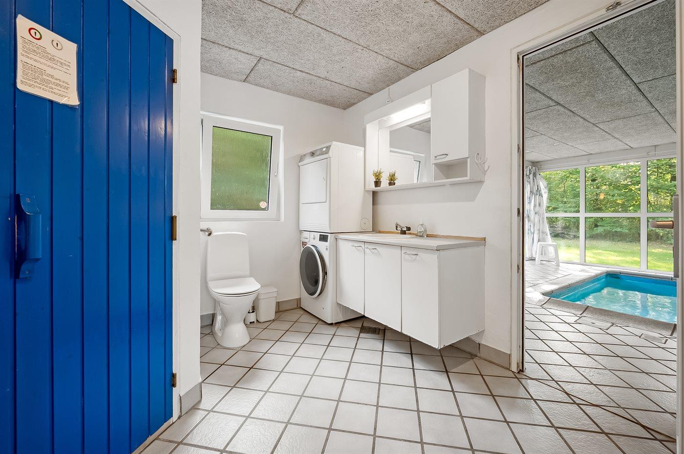Rummeligt sommerhus med indendørs swimmingpool og børnevenlig strand 600 m fra Fjellerup Strand.