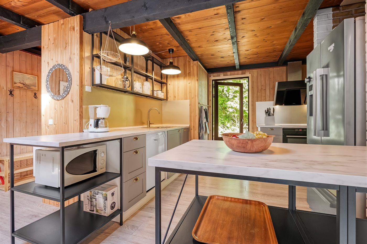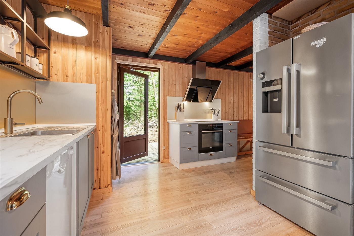 Køkkenet er udstyret med 1 køleskab. Der er 4 induktionskogeplader, varmluftovn, mikrobølgeovn samt opvaskemaskine.