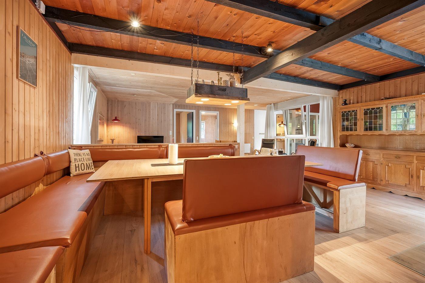 Indvendig fremstår sommerhuset i delvis original stand, men er også løbende moderniseret og fremstår og velholdt i fin stand. Indretningen er særdeles god til f.eks. to familier, eller måske en børnefamilie med bedsteforældre - mulighederne er mange i dette store sommerhus. Det er også muligt at medbringe familiens firbenede ven.