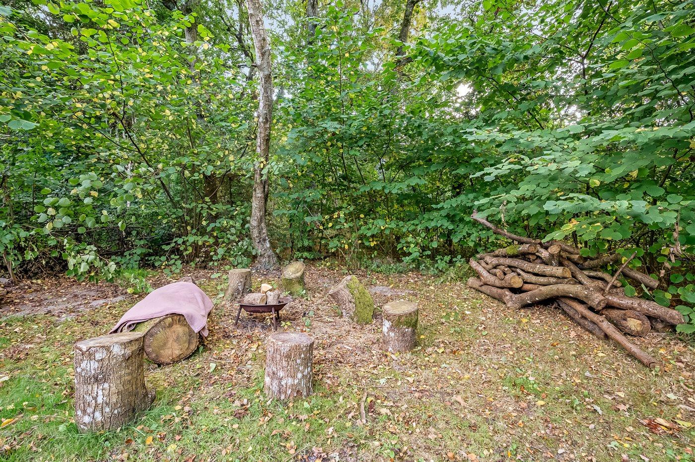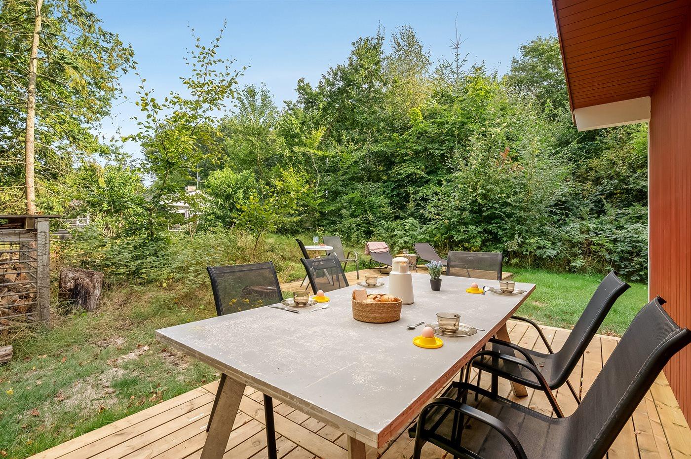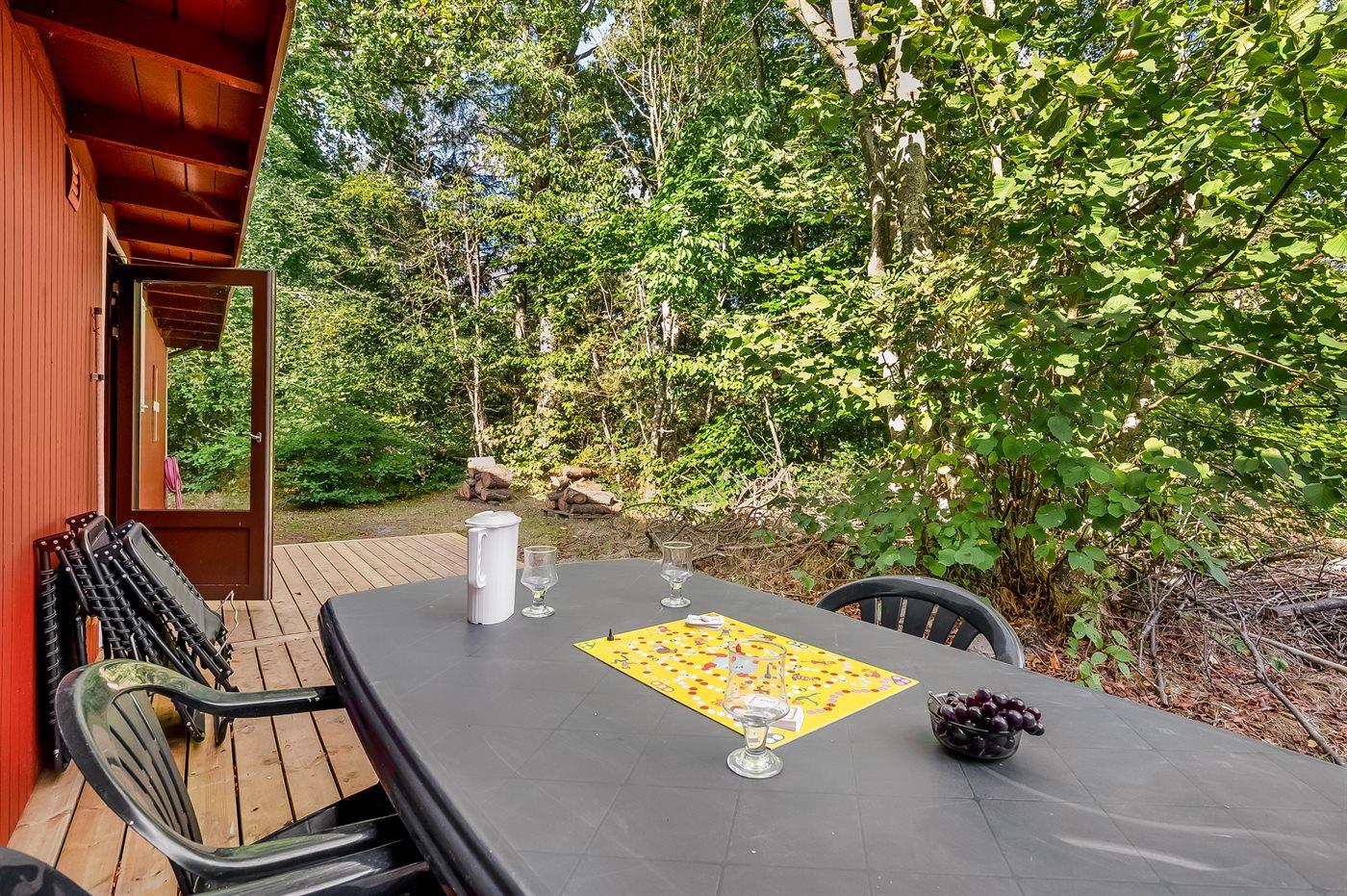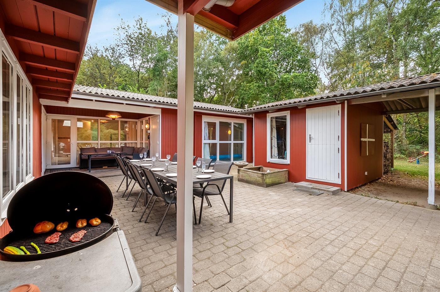 Huset ligger fuldstændig ugenert på en stor og skøn grund. Her findes et godt terrasseareal, som også delvist er overdækket og, hvor man kan altid finde en krog med læ – her kan stilheden nydes til fulde med en kop kaffe eller et glas vin.