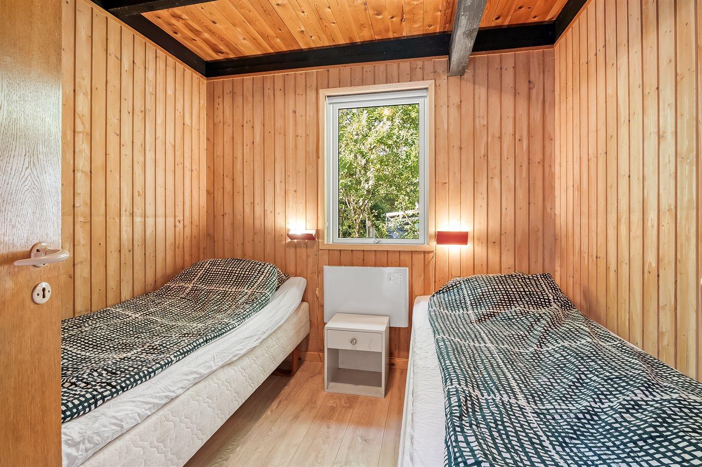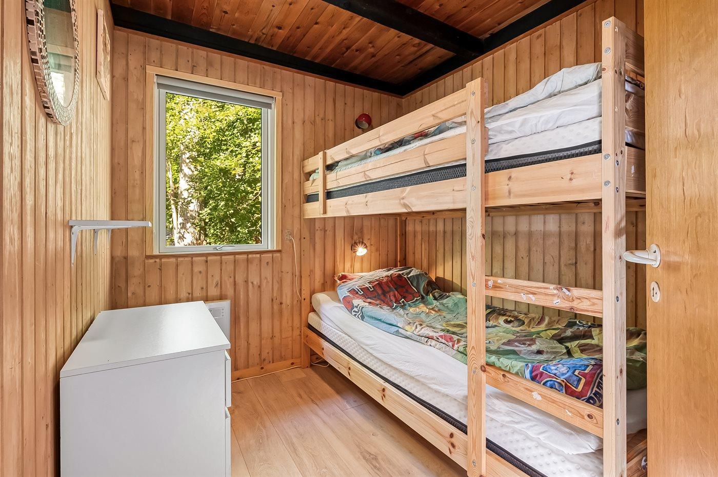 Der er i alt 5 soveværelser. Sovepladserne fordeler sig på: 4 sovepladser i dobbeltsenge. 2 sovepladser i enkeltsenge. 4 sovepladser i køjesenge.