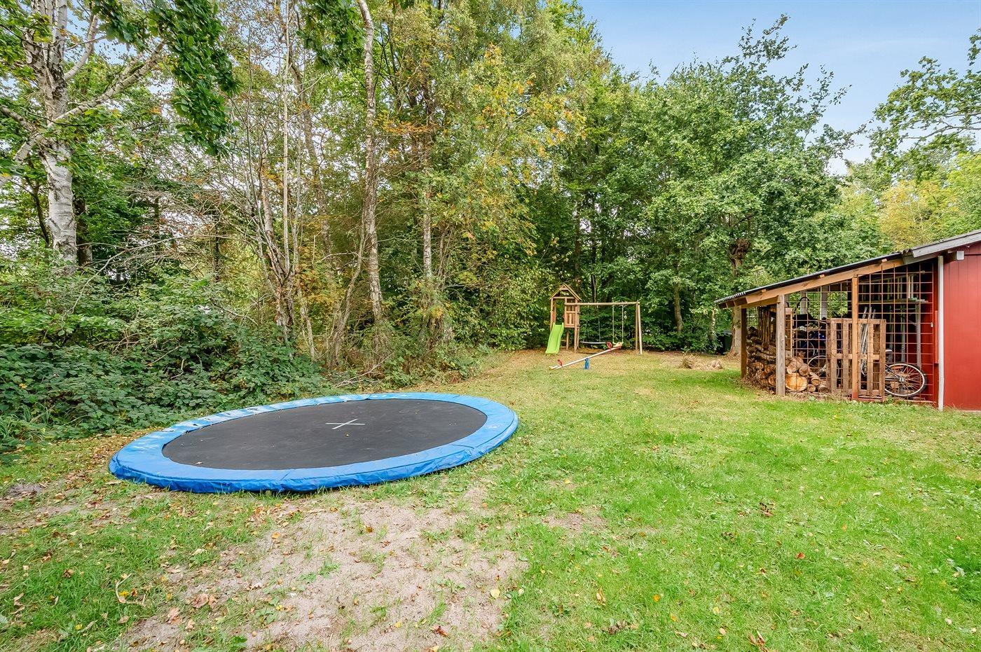 Ferieboligen er beliggende på en 1371 m² stor naturgrund. Der er 600 m til havet. Nærmeste forretning er beliggende i en afstand af 1000 m. Til ferieboligen hører åbent terrasseareal. Desuden er der overdækket terrasse. Gynge. Trampolin. Legetårn. Rutchebane. Bålsted. Grill til rådighed. Parkering ved ferieboligen.