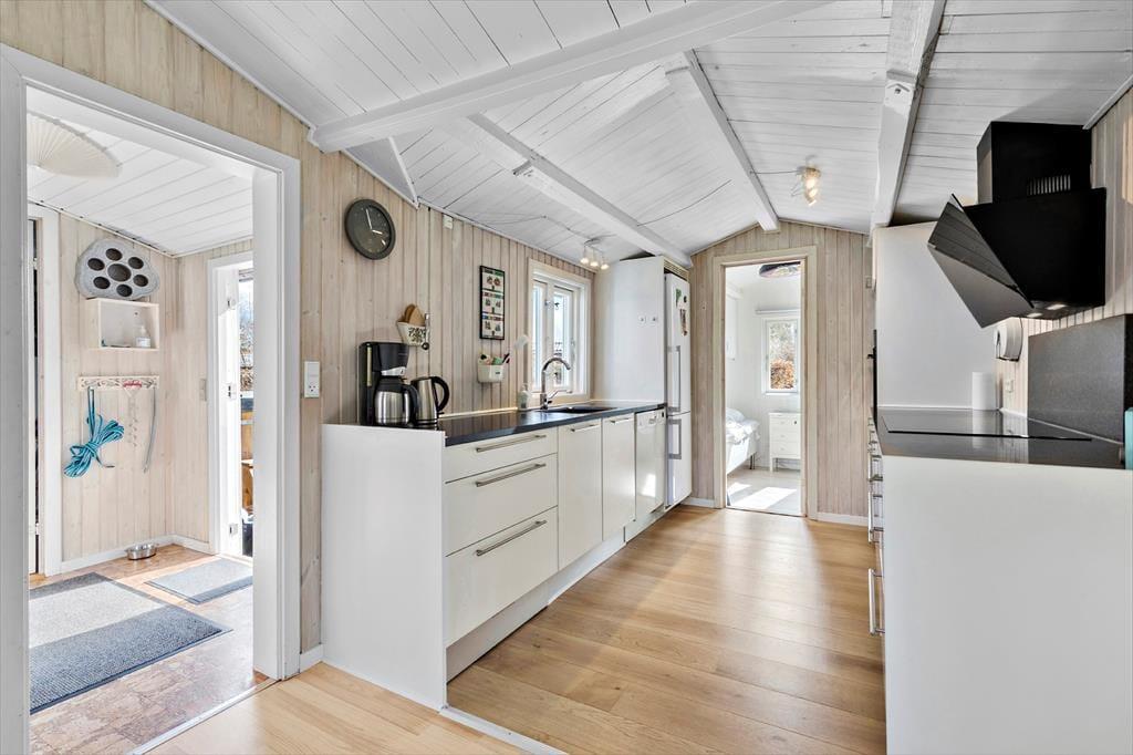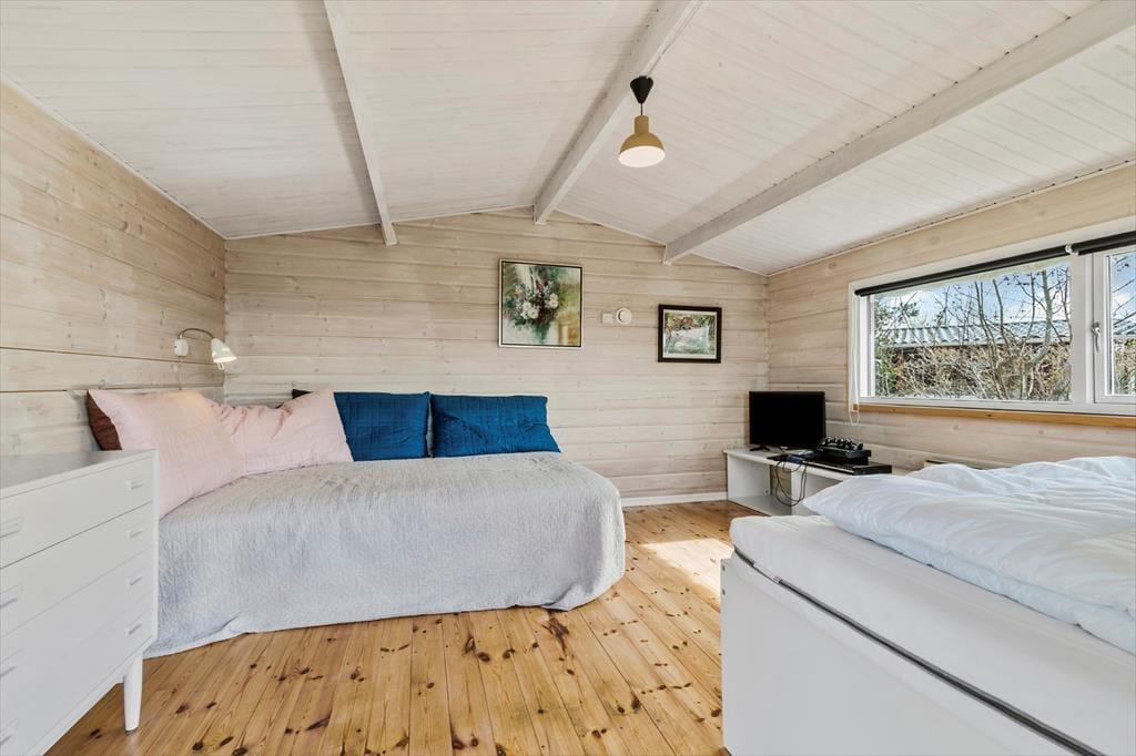 til et charmerende og stemningsfuldt sommerhus, hvor feriedrømmene går i opfyldelse. Kun 400 meter fra en børnevenlig badestrand finder du denne perle – et perfekt sted til afslapning, leg og måske lidt fiskeri i solnedgangen. Inde i sommerhuset venter en hyggelig stue, hvor brændeovnen knitrer og spreder varme på kølige aftener. Her kan du synke ned i sofaen med en god bog eller samles med familien foran tv’et til en hyggelig filmaften. Spisekrogen, der ligger i åben forbindelse med det lyse og funktionelle køkken, skaber de perfekte rammer for samtaler og grin, mens du tilbereder lækre feriemåltider. Køkkenet har alt, hvad du behøver – inklusive god fryseplads til dagens fangst eller is til børnene. Huset byder også på en praktisk entre og et pænt, funktionelt badeværelse med bruseniche. Når dagen går på hæld, kan du trække dig tilbage til et af de to hyggelige soveværelser – det ene med en behagelig dobbeltseng, det andet med to enkeltsenge, der er perfekte til børnene. For teenagerne (eller dem, der drømmer om lidt alenetid), er der et rummeligt og stemningsfuldt anneks. Her finder du en dobbeltseng, en enkeltseng, tv og en spillekonsol – det bliver uden tvivl familiens nye favoritsted, hvor konkurrence og grin fylder rummet.