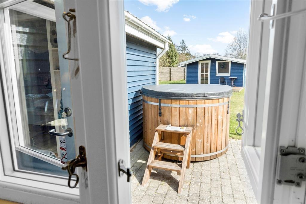 Forestil dig en solrig dag i en helt plan og næsten lukket have – et lille fristed, hvor hele familien, både tobenede og firbenede, kan boltre sig frit. Børnene løber grinende rundt på den grønne græsplæne, mens hunden halser lykkeligt efter en bold. Du har fundet det perfekte sted i solen, lagt dig på et tæppe med en god bog, og solen varmer blidt dit ansigt. På den store, flisebelagte terrasse står resten af familien og gør grillen klar. Duftene breder sig, og der er skruet op for feriestemningen. Her kan du nyde en kold, læskende drink i skyggen af parasollen og lade dagens tempo falde helt til ro. Når solen begynder at gå ned, og aftenen melder sin ankomst, venter endnu en lille luksus. Ved siden af terrassen står et dejligt vildmarksbad, hvor dampen stiger op mod den lyserøde himmel. Fyld det med varmt vand, og læn dig tilbage, mens du nyder stilheden og stjernerne, der langsomt dukker frem. Måske sidder I samlet hele familien, eller måske er det din helt egen stund med et glas vin i hånden og følelsen af total afslapning. Denne have er ikke bare et sted – det er en oplevelse.