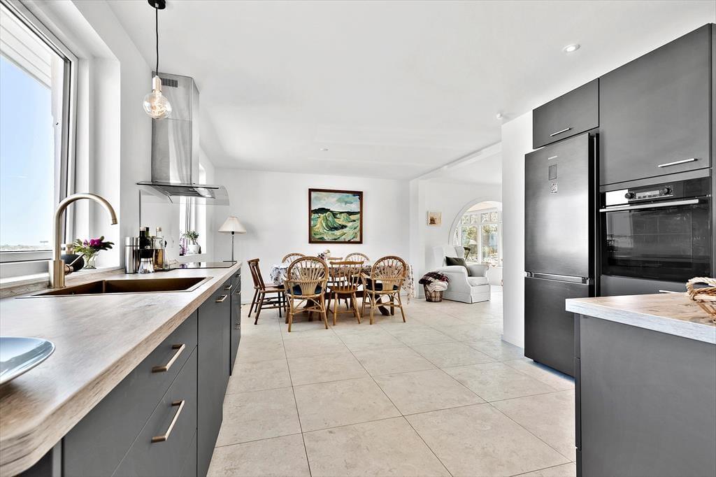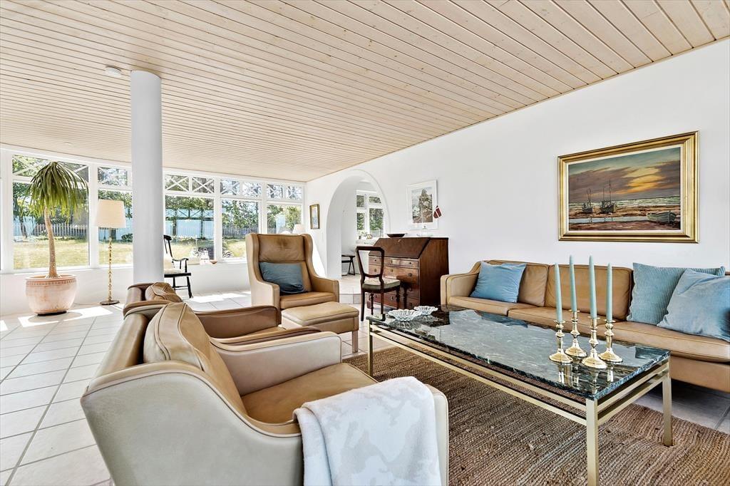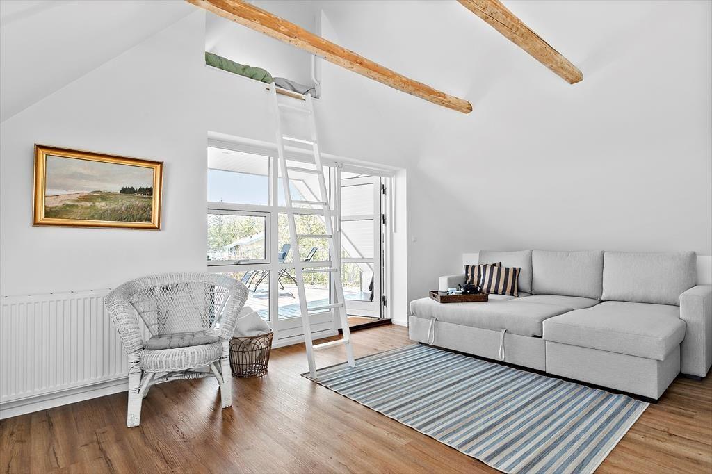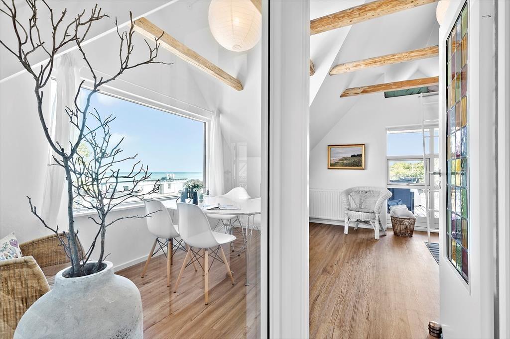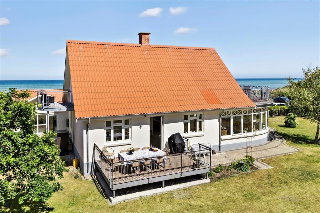Det er næsten lige meget, hvor du befinder dig i dette pragtfulde hus, så kan du se havet og med vinduer og døre åbne, kan du også dufte og høre det. Det giver ro udover alle grænser og du vil nyde ferien i fulde drag. Huset er fra 1930 – I en tid, der er kendt for opførelse af gedigne huse med øje for æstetik. Istandsættelser, senest i 2023, er udført smagfuldt og med respekt for de gamle fine detaljer og ”krydret” med moderne interiør. Huset er 173 i 2 plan. Indgang i entré med adgang til det skønneste badeværelse med både bruser og lækkert badekar. Entreen fører også til køkkenet, der er rummeligt, hyggeligt og moderne på én og samme tid og har alle de faciliteter, du har brug for, til at tilberede dejligt feriemad. Her er god spiseplads og du føres naturligt videre til stue og videre til ”havestue”, hvor der er rigtig god plads og hvor du også kan nyde udsigten til den skønne have. Havestuen er fuldt integreret i huset, her er gulvvarme, som i resten af stueplan og benyttes året rundt. Stueetagen har ét soveværelse med dobbeltseng. Fra stuen er der udgang til stor terrasse, der vender mod haven og her du griller de friske fisk, som du har købt hos Fiskemand Andersen lige overfor. Fra stuen er der trappe til 1. sal, der byder på 2 skønne værelser. Det ene værelse har udgang til udsigtsbalkon, hvor du kan nyde en bog og et glas vin til solnedgangen over havet. Du kan i øvrigt nyde synet af havet fra sengen. Det andet værelse har også fantastisk havudsigt og 4 sovepladser - 2 på hemsen og 2 på dobbeltsovesofa. Fra dette værelse er der adgang til den dejligste tagterrasse, du kan forestille dig. Her er fantastisk udsigt til havet samt liggestole og loungemøbler og du får fornemmelsen af, at du befinder dg på et soldæk på et dejligt skib. Sidst men ikke mindst er der 28 m2 anneks, der nærmest et en lille lejlighed. Her er dobbeltseng, mikroovn, kaffemaskine og udgang til lille terrasse samt adgang til badeværelse med bruser og vaskemaskine med tørrefunktion.