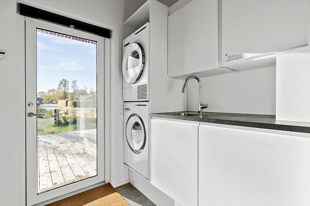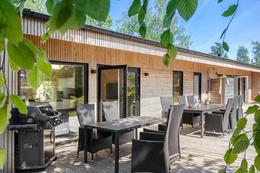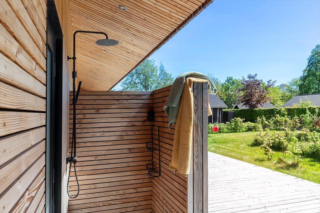 Den skønneste terrasse, hvor udelivet kan nydes i fulde drag og dejlig have med sandkasse, gynge og trampolin, som børnene kan muntrer sig med. Her er udebruser og god plads til at lade bilen. Kun 350 meter til en børnevenlig badestrand, hvor du kan nyde strandlivet på alle årstider.