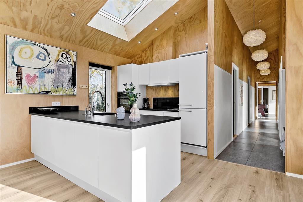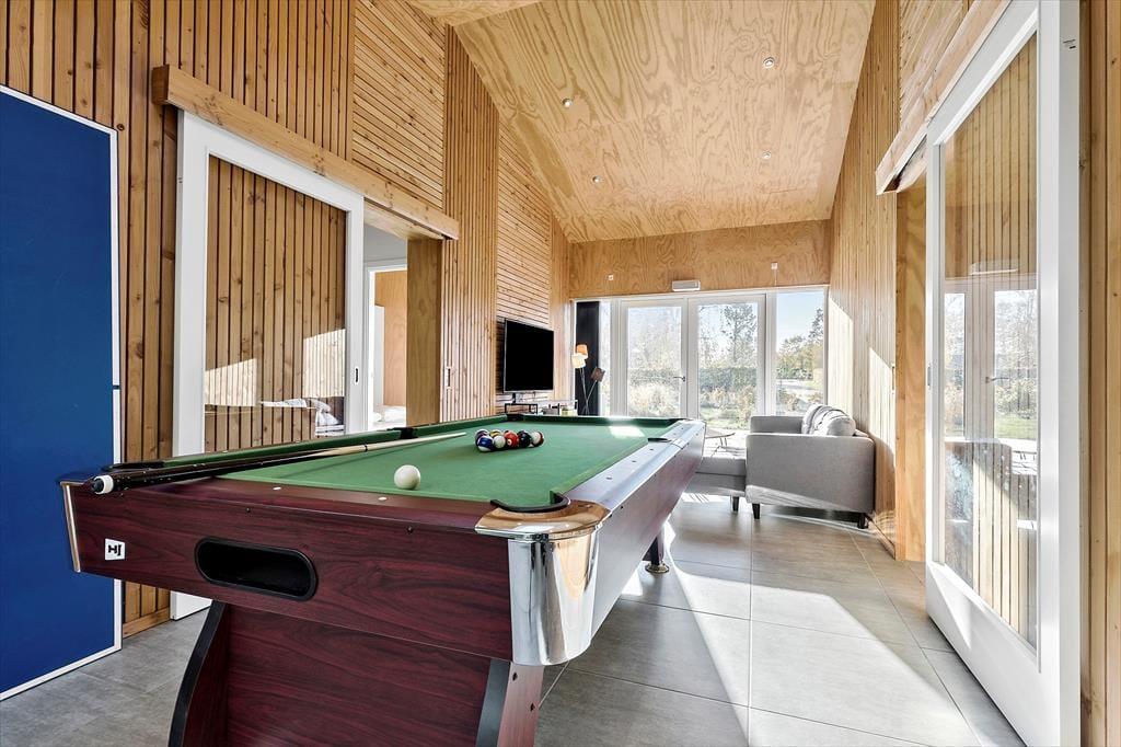 til dette luksuriøse feriehus, der har alt, hvad du behøver for en uforglemmelig ferie. Nyt og moderne feriehus fra 2021, der har god stil, smart indretning og hyggelig atmosfære. Huset har plads til 10 personer og byder på en række fantastiske faciliteter. To lækre og komfortable badeværelser - det ene med indendørs spa, hvor du rigtig kan slappe af og lade hverdagen smelte væk. Fem soveværelser - alle med gode dobbeltsenge. To af soveværelserne og det ene badeværelse ligger i den ene ende af huset og støder op til aktivitetsrum, der er veludstyret med billard, bordtennis og air-hockey. Så du kan roligt dyste og have det sjovt, uden at forstyrre de som nyder freden, spaen og det dejlige køkken/alrum og stuen med TV i den anden ende af huset. Gulvvarmen sørger for, at der er dejligt lunt i hele huset. Godt bryggers med vaskemaskine, tørretumbler og god plads til at køre en barnevogn ind, gør det nemt at hold ferie med de små.