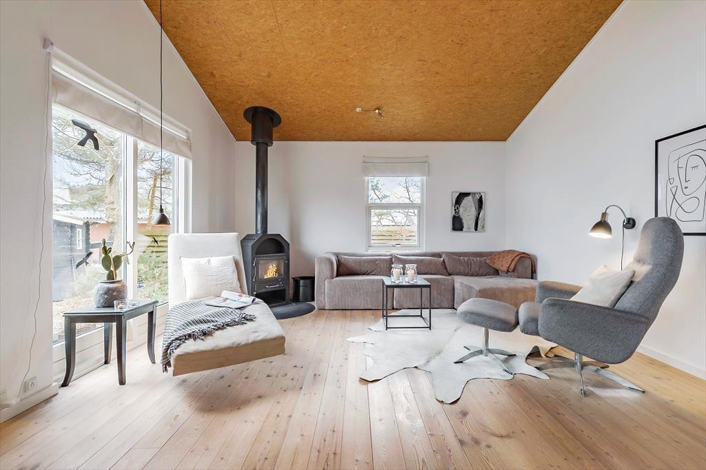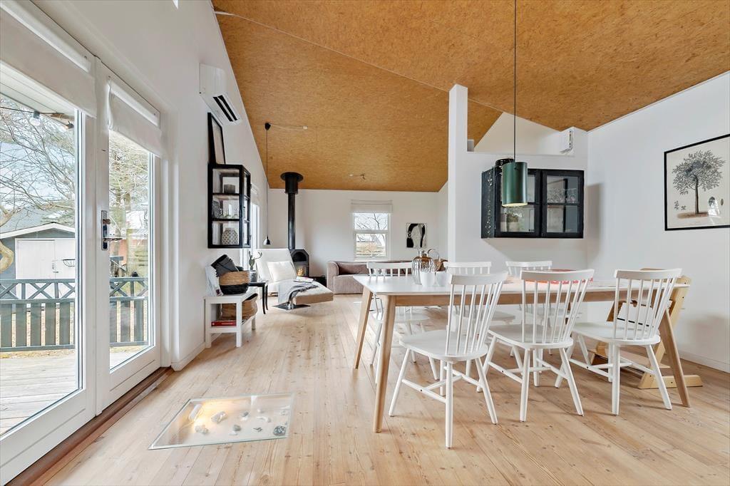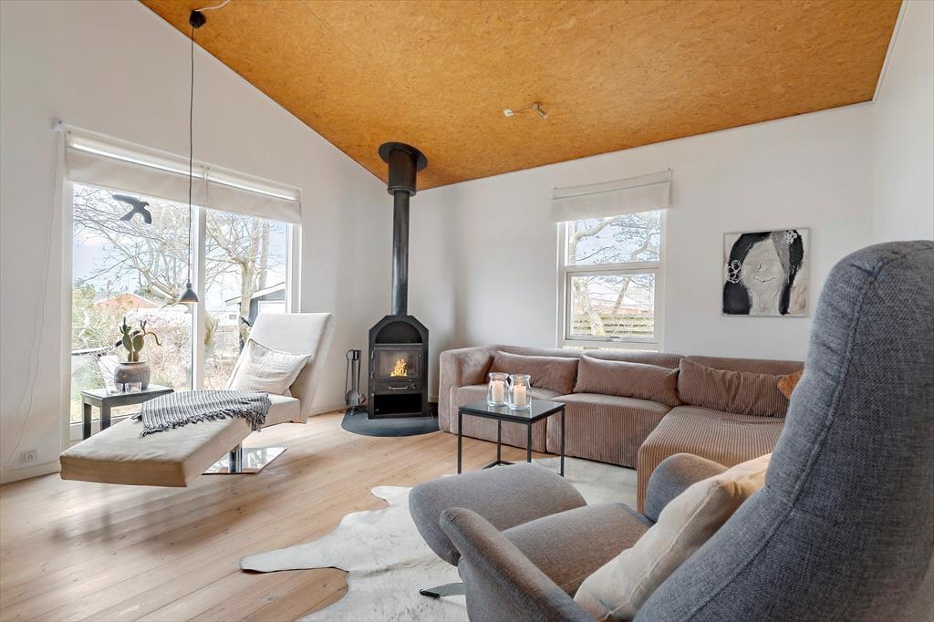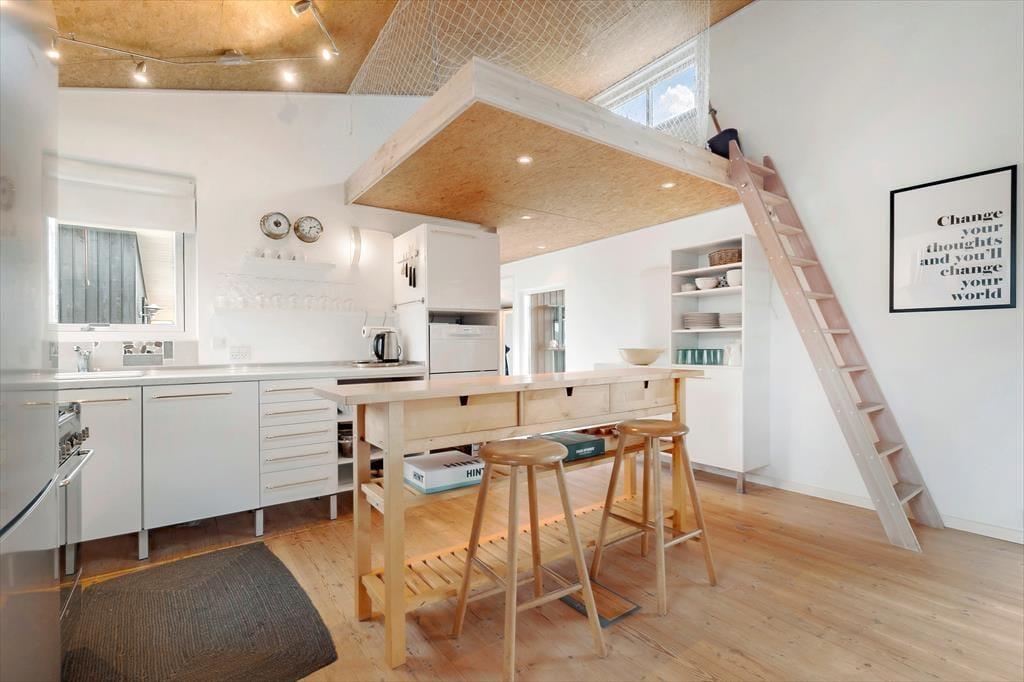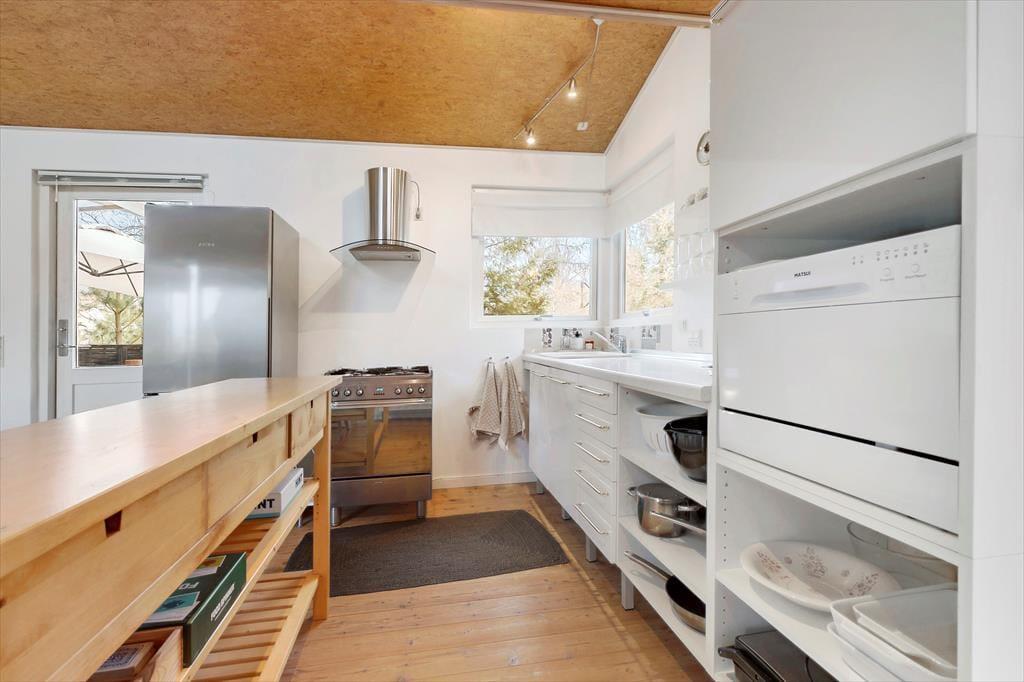Dejligt hus med store lyse rum. Du mærker straks at køkkenet er hjertet i dette hus. Her er god plads og masser af naturligt lys i alle opholdsrummene. Køkkenet ligger i åben forbindelse med stuen og her kan alle deltage i madlavning eller spille spil, så hyggen virkelig breder sig. Lyset i køkkenet kommer ind fra begge sider af rummet, så det er heller aldrig kedeligt, bare at se ud på terrasserne og naturen der omkranser huset. Køkkenet har et gaskomfur ovnen er dog til elektricitet, så hvis du gerne vil kokkerere og kunne styre varmen øjeblikkeligt, så er dette hus det helt rigtige for dig. Begge værelserne er store og gør at der virkelig er plads til dig og familien med al den bagage, som vi får med. Til huset er der et anneks, hvor der er en dobbeltseng. Annekset har gulvvarme og det er også her du finder vaskemaskinen og en lille ekstra fryser.