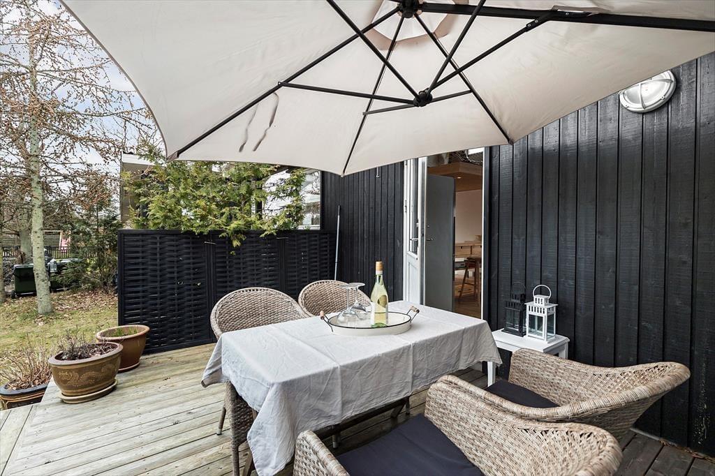 Dette hus har mange hyggelige terrasser så lige meget hvor solen er, så kan du sidde ude og nyde den.