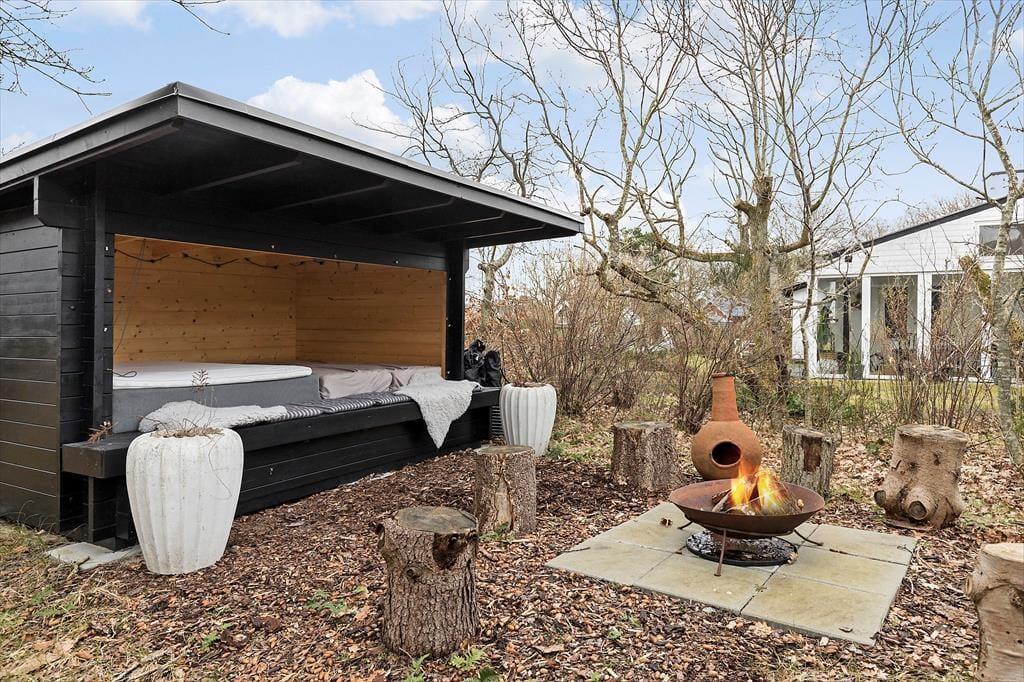 I kan også lege i det store udendørs shelter med bålplads lige foran. Her kan du riste marshmallows og sammen med en pakke kiks, sætter det virkelig gang i hyggen også på en dag uden så meget sol.