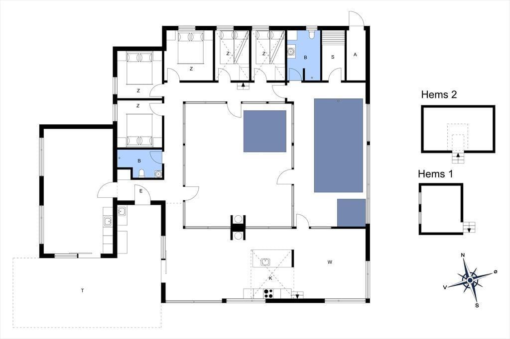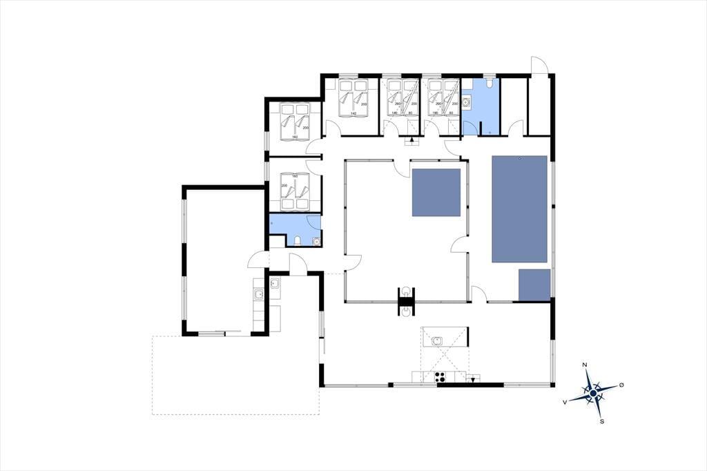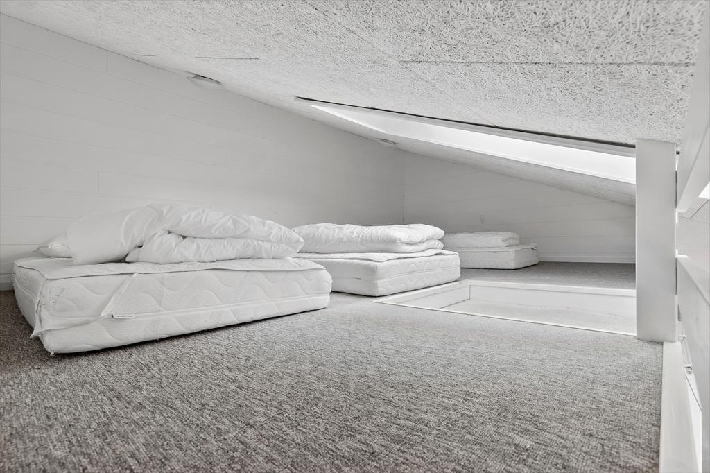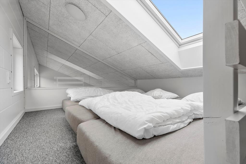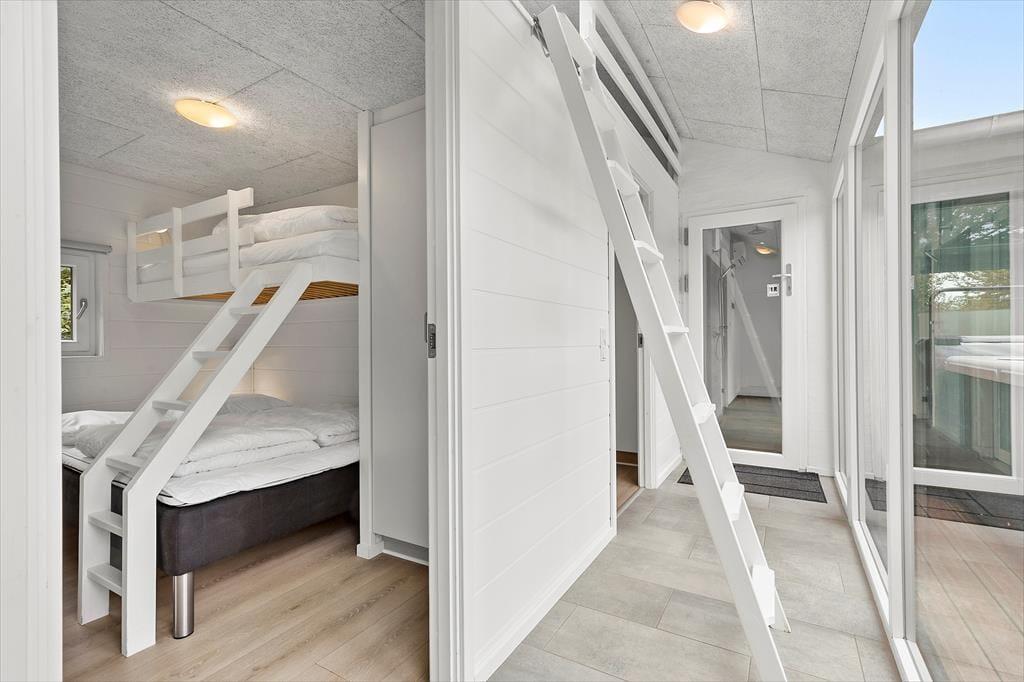 Huset tilbyder fem komfortable soveværelser, 3 udstyret med dobbeltsenge og 2 med store køjesenge, hvor der er dobbeltseng forneden og enkeltseng øverst. Derudover er der to hyggelige hemse med i alt seks sovepladser, som er perfekte for børnene eller de unge voksne i familien. Selv jeres firbenede familiemedlemmer er velkomne her, så ingen behøver at blive hjemme.