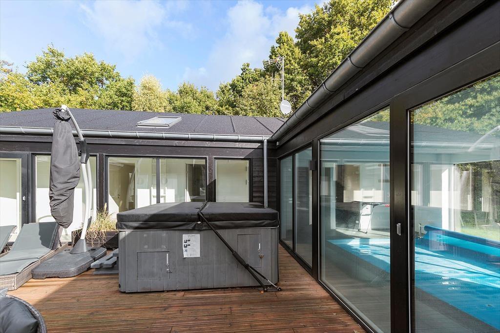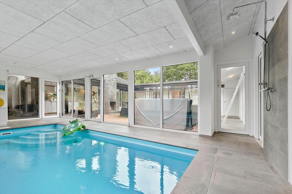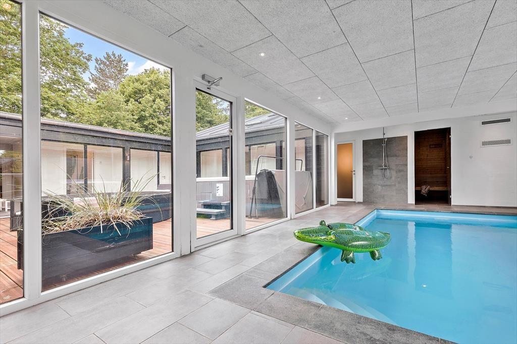 Start dagen med en dukkert i den indendørs pool. Børnene leger og plasker, mens I slapper af i den varme spa og lader tankerne drive væk. Den lyse og åbne indretning af huset skaber en behagelig atmosfære, hvor latteren runger, og fælles stunder skabes – og med det gode udsyn til både poolområde og den hyggelige atriumterrasse, er I altid tæt på det, der sker.