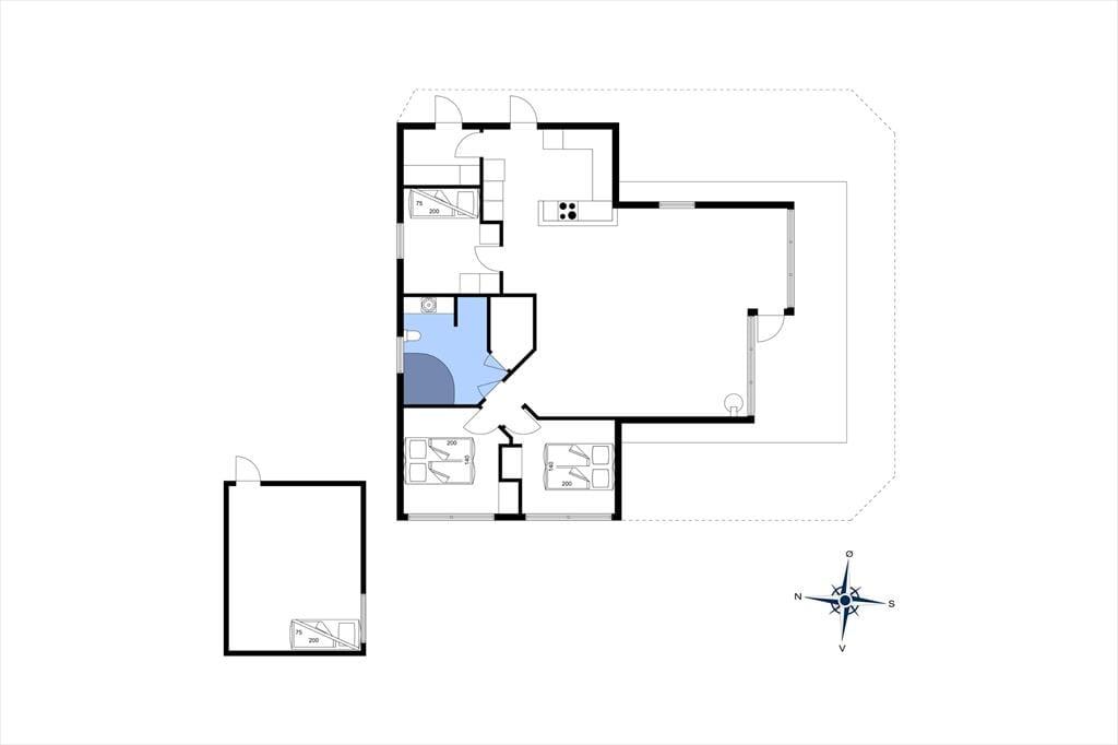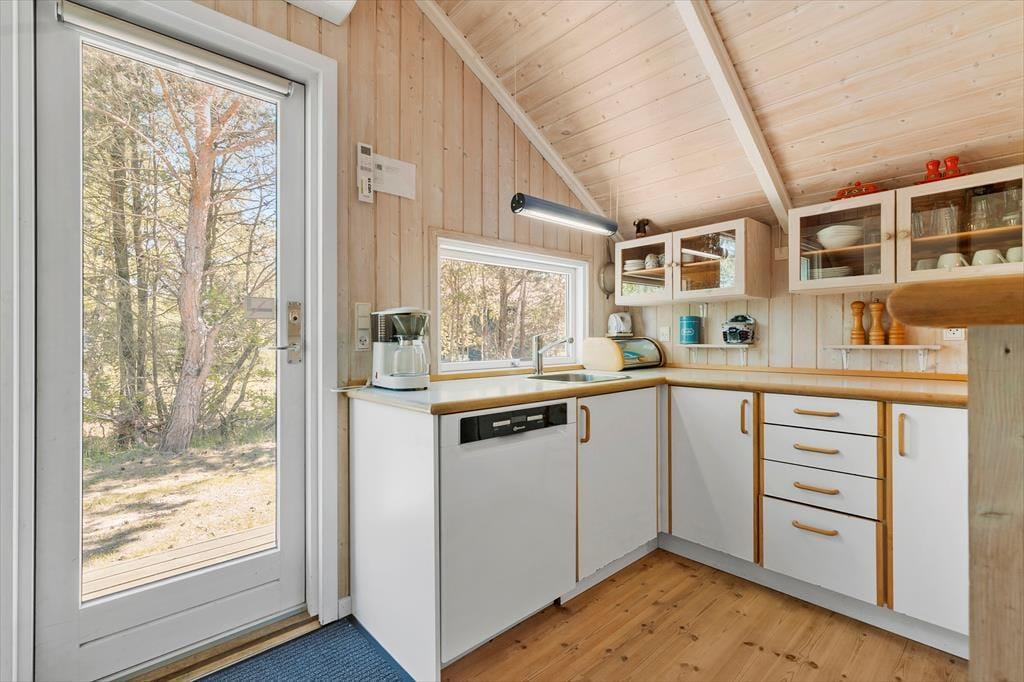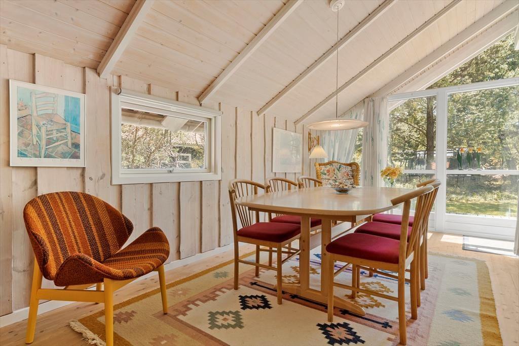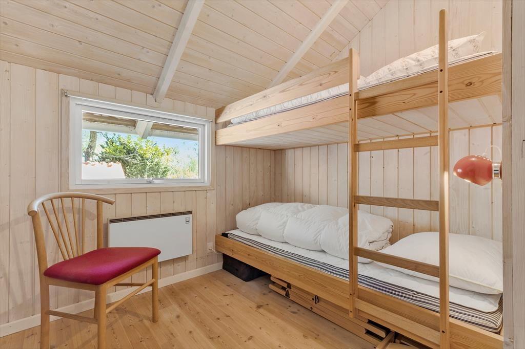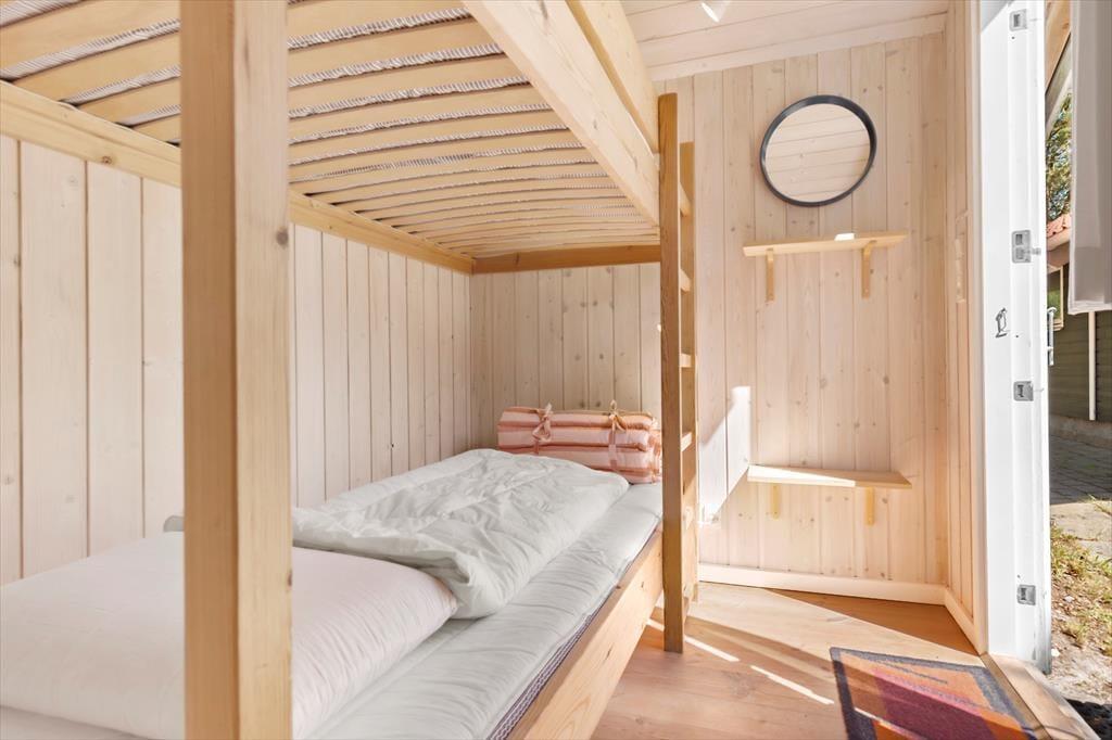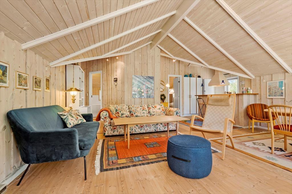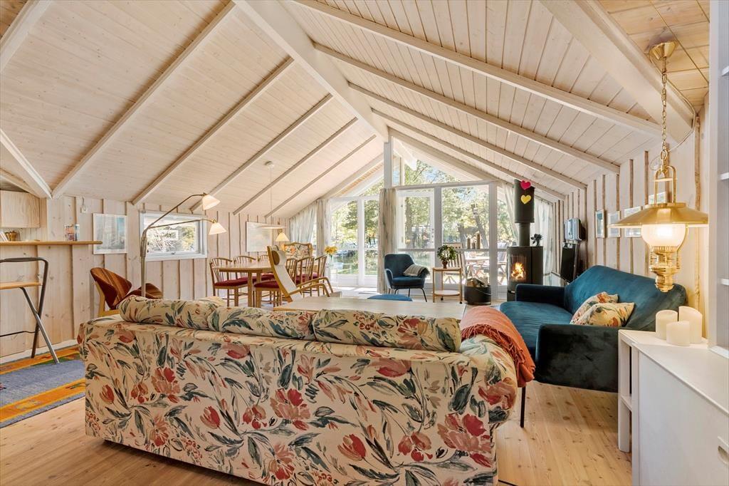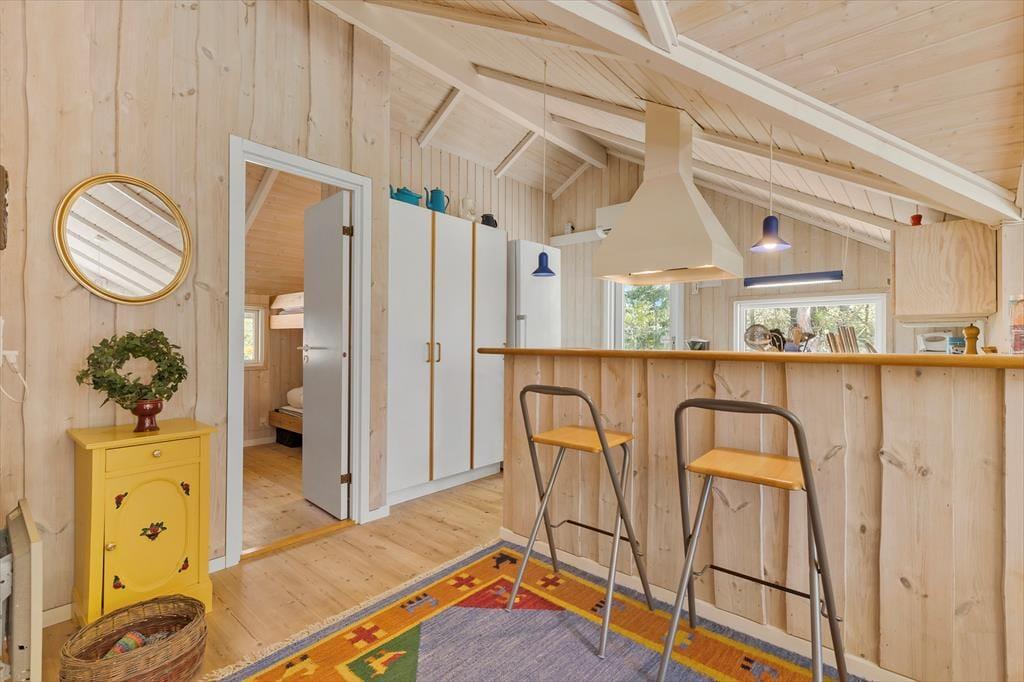 Velkommen indenfor: Velkommen til dette dejlige sommerhus, hvor farverne danser og humøret er højt året rundt. Indenfor bliver du straks mødt af en oase af farver og glæde. Køkkenet, stuen og spisepladsen smelter sammen i ét åbent rum, hvor højt til loftet giver en luftig fornemmelse. Her kan du lave lækre måltider i det fuldt udstyrede køkken, mens du hygger dig med familie og venner i stuen eller ved spisebordet. Og når dagen går på hæld, kan du forkæle dig selv med en afslappende spaoplevelse i det rummelige badeværelse med både spa og sauna. Når det er tid til at hvile, venter tre indbydende soveværelser på dig. To af dem er udstyret med dobbeltsenge og det tredje soveværelse er et sjovt køjerum. Hvis de lidt større børn får lyst til "at flytte lidt hjemmefra" i ferien, så kan de bo i annekset, hvor der også er køjer.