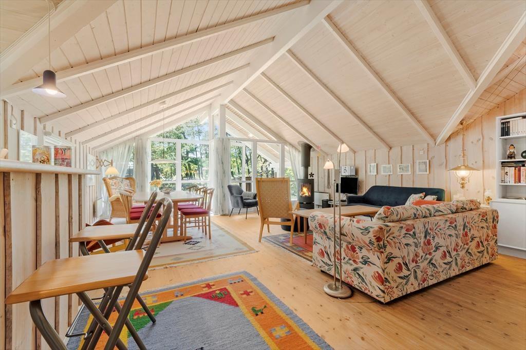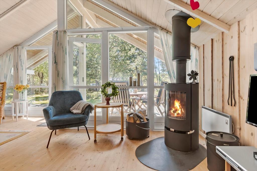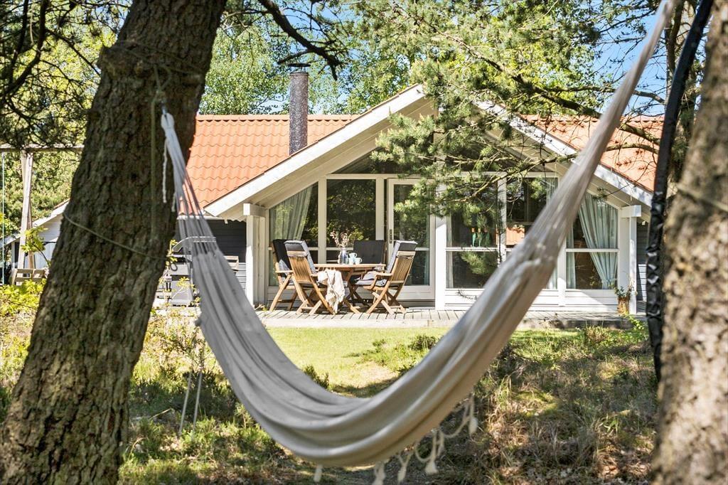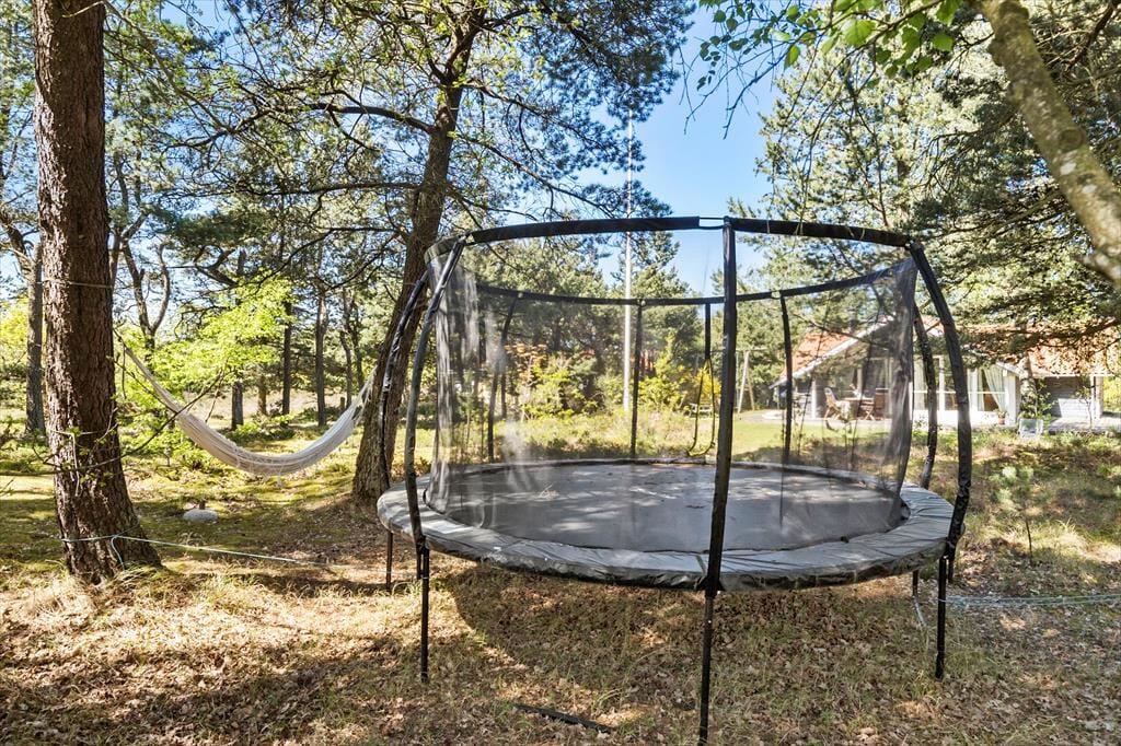 Nyd livet udenfor: Udenfor er der en skøn verden at udforske. På den herlige, ugenerte grund er der en stor græsplæne, der omgiver hele huset, perfekt til leg og boldspil. Gril lækre måltider på terrassen eller slik sol - her er flere dejlige kroge. Og når det er tid til afslapning, kan du lade dig synke ned i en hængekøje, mens du lytter til lyden af naturen omkring dig. For de mere aktive gæster er der en trampolin, der indbyder til hoppeleg, og gynger, der bringer minderne om barndommens glæder til live. Om aftenen kan I samles omkring bålstedet, hvor I kan grille lækre snacks og nyde hinandens selskab under stjernerne. Alt i alt byder sommerhuset.