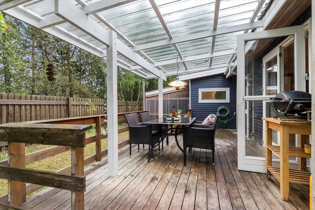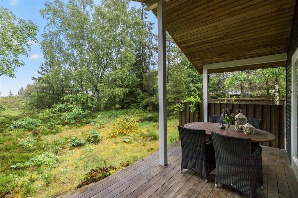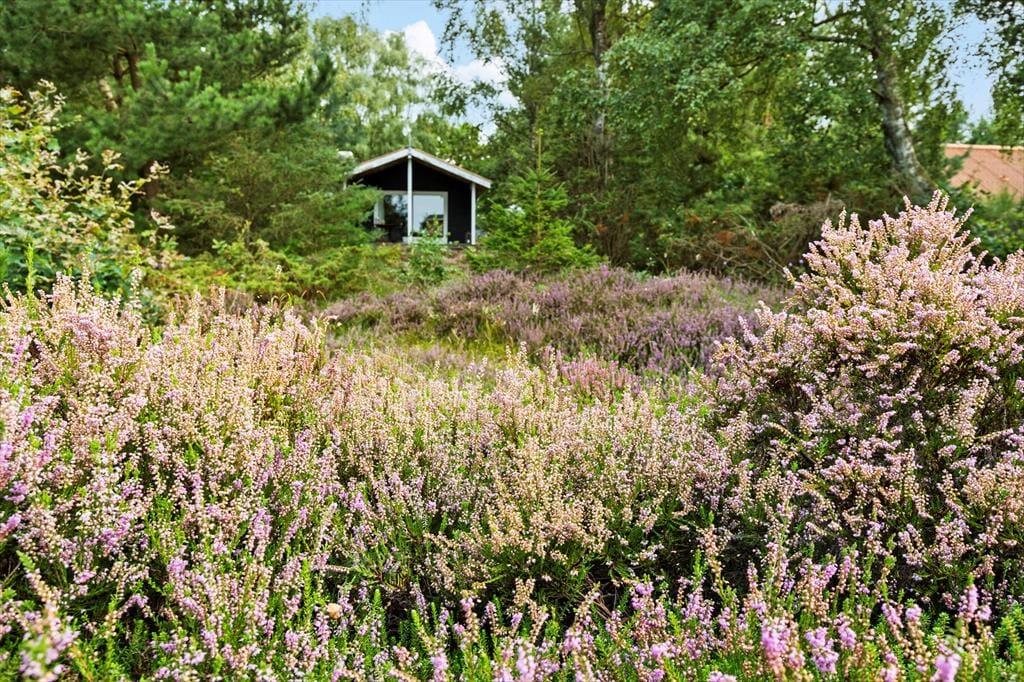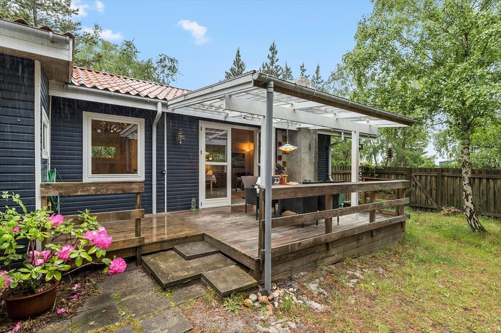 Nyd livet udenfor: Grunden er en naturperle med gammel og smuk lyng, der skaber en autentisk og charmerende atmosfære. Her er et hyggeligt bålsted, perfekt til aftener med snobrød, skumfiduser og hyggelige samtaler under stjernerne. Huset er omkranset af terrasser på alle sider, hvor flere af dem er overdækkede, så du kan nyde udelivet uanset vejret. Fra stue og terrasse kan du skimte vandet 200 meter borte, hvilket giver en ekstra dimension af fred og ro.
