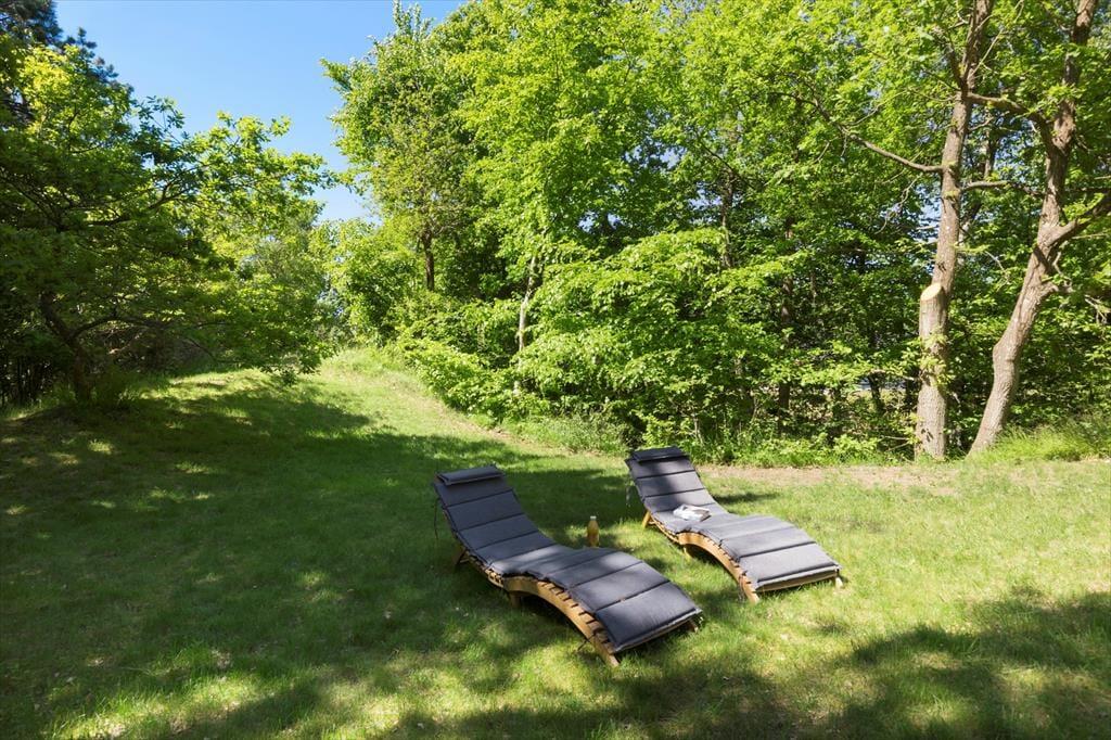 Nyd livet udenfor Den kuperede skovgrund strækker sig som en uendelig oase af eventyr. Her er græsset vildt og frodigt og kun en lille del af det bliver klippet, så naturen har frit spil her med et smukt resultat. En bålplads inviterer til hyggelige aftener under stjernerne, mens skovens dufte og lyde omgiver dig, ilden knitrer og du griller skumfiduser eller bager pandekager. Svalt hjørne med sandkasse og når du trænger til at forfriske dig, kan du nyde et brusebad i udebruseren under åben himmel og midt i skoven.