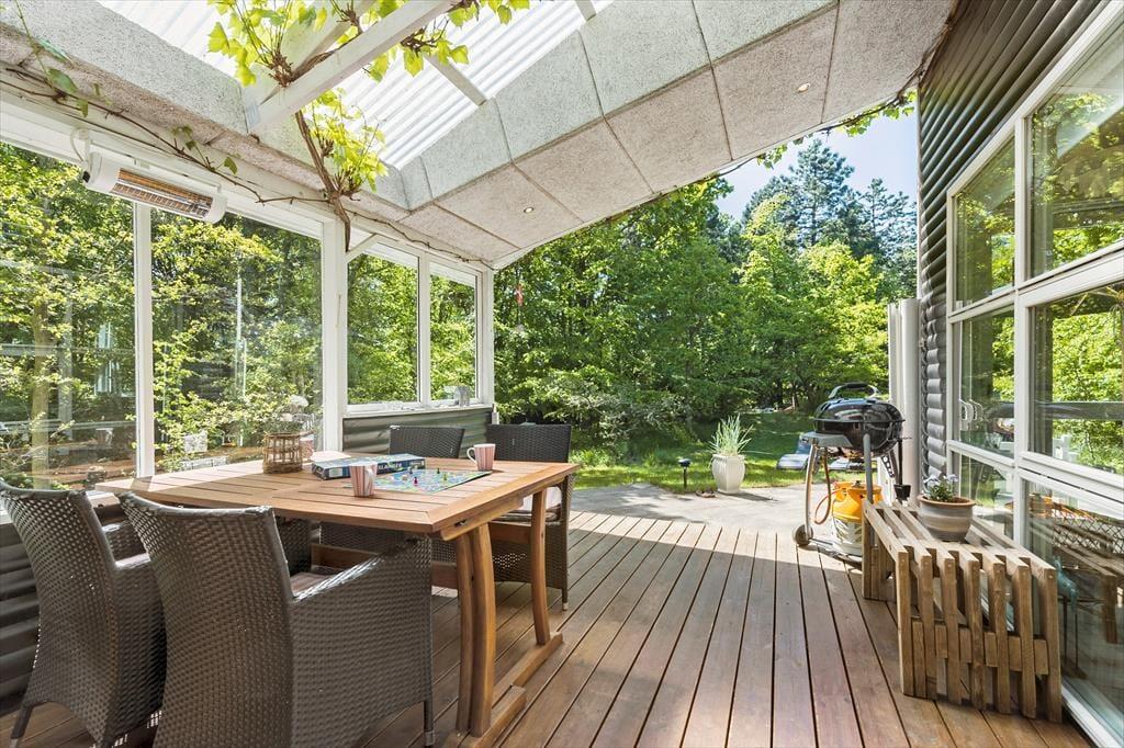 Velkommen indenfor I den dybe, tætte skov gemmer dette sommerhus sig blandt træernes grønne løv. Det er et sted, hvor hvert hjørne oser af hygge og varme, og hvor naturens nærvær føles som en kærkommen omfavnelse. På verandaen breder sig en atmosfære af afslapning og samvær, med en terrassevarmer og et læhegn, der skaber en behagelig kokon, så du kan sidde ude længe. Over hovedet svajer vinrankerne og giver en følelse af at være på en sydlandsk terrasse midt i den danske skov. Køkken med sommerhusstemning og et strejf af landlig idyl. Her kan du tilberede dejlig feriemad, mens du holder øje med de mindste og sludrer med de ældste. I stuen danser flammerne fra brændeovnen, og i hjørnet er spisekrogen med rustik slagbænk, hvor du kan nyde maden med udsigt til den fortryllende skovgrund udenfor. Sommerhuset byder på to hyggelige soveværelser - begge med dobbeltseng og en sovehems, hvor du kan lade drømmene flyve frit under det skrå loft. Badeværelset er indrettet med alt, hvad du behøver for at føle dig velkommen og komfortabel.
