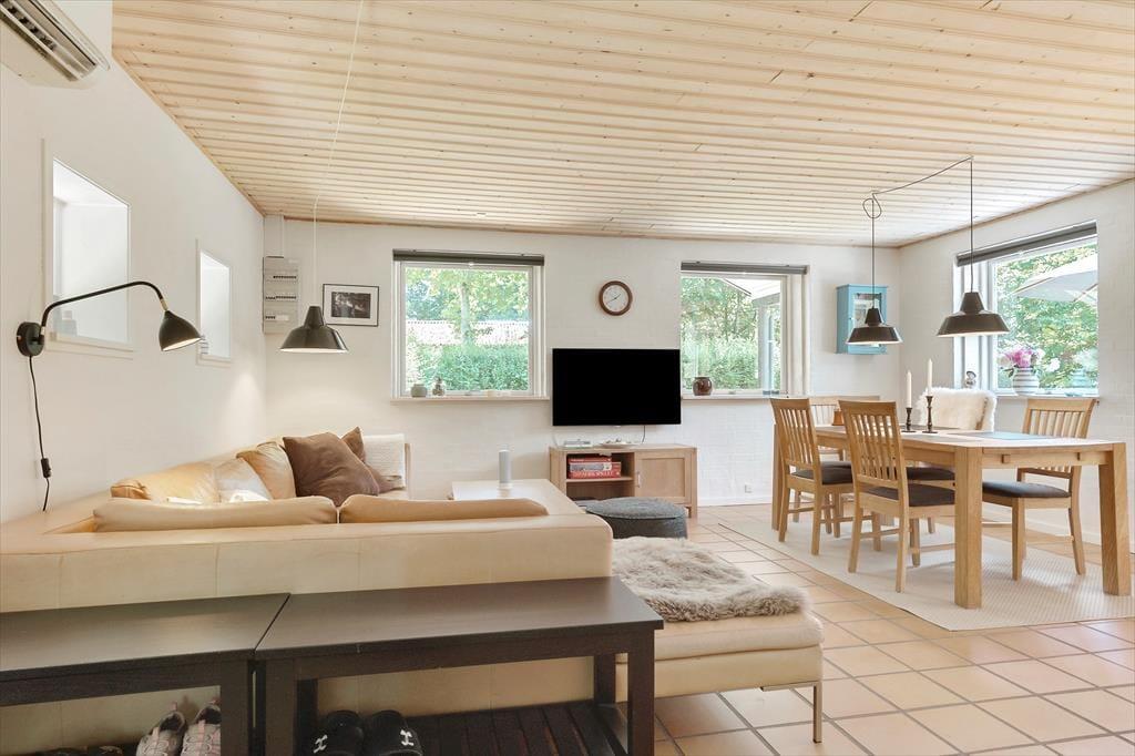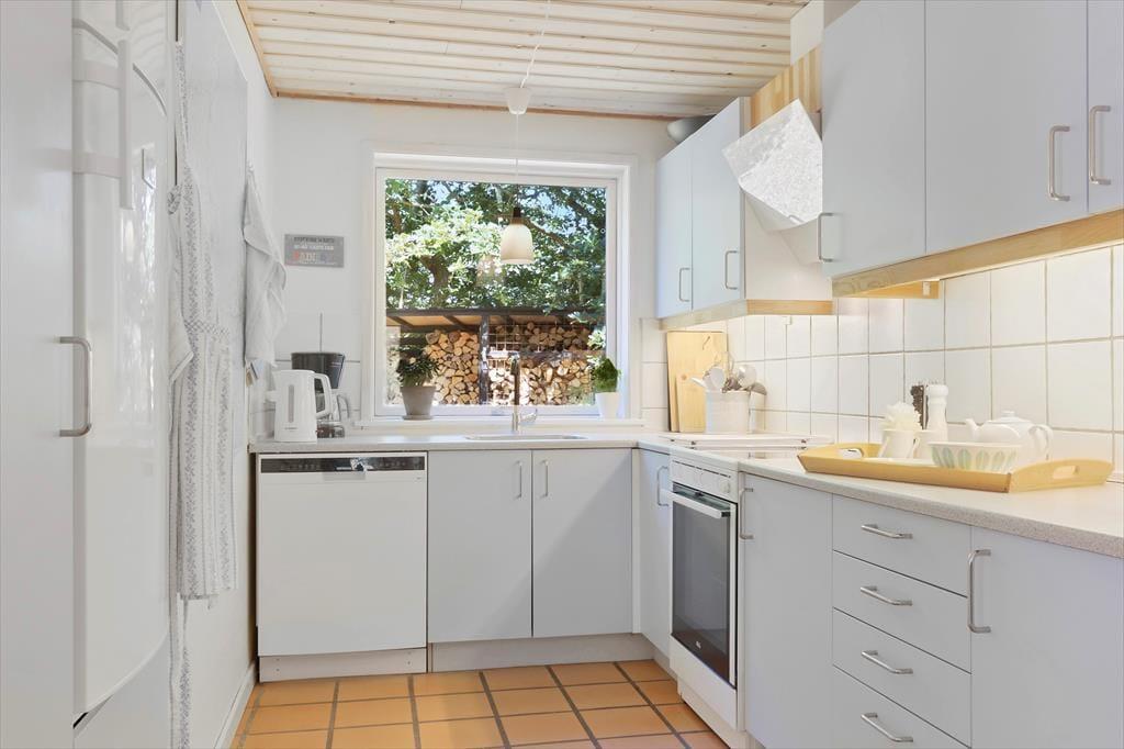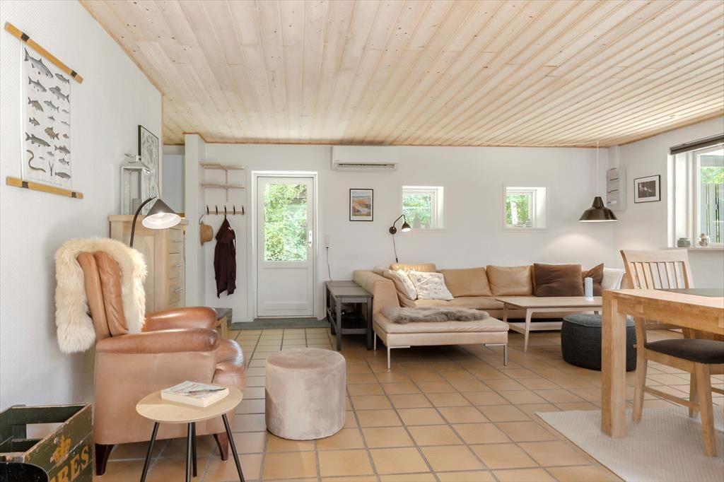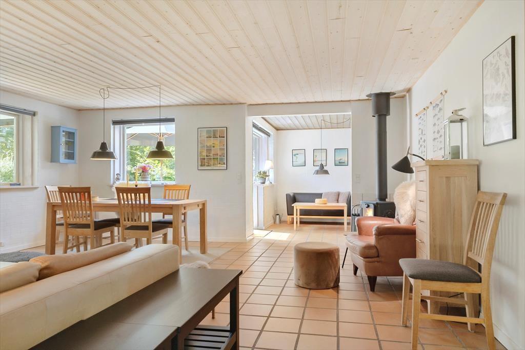 Velkommen indenfor Et velholdt og charmerende sommerhus, der udstråler smagfuldhed i valget af møbler og interiør, der er holdt i smukke og rolige farver. Samtidig gennemtænkt og praktisk med et flot klinkegulv i det meste af huset. Et elegant indtryk og samtidig nemt at have med at gøre under ferien. Stue og spisestue er kombineret i ét rummeligt og dejligt rum, hvor en brændeovn tilføjer varme og hygge. Det separate køkken har et vindue, så du kan nyde udsigten til haven og bålpladsen, mens du tilbereder friske råvarer som kartofler, jordbær og friske fisk. Der er tre dejlige soveværelser, der sikrer en god nats søvn, og et lækkert badeværelse med spa, der indbyder til afslapning og selvforkælelse. Dette træsommerhus er ideelt for dem, der søger en fredfyldt og komfortabel ferie i naturskønne omgivelser samme med familie, venner og hunde.
