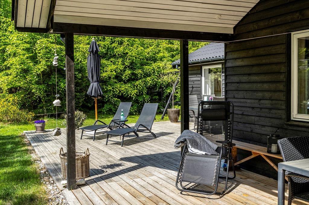 Nyd livet udenfor Haven er en sand oase. Her kan du nyde den friske luft på mange måder. Start feriedagene med skønsang under bruseren udenfor, leg med børnene på græsplænen, hyg og grill på den skønne terrasse, der delvist er overdækket, og afslut dagen omkring bålet med snobrød og historier om gamle ferieminder. Tag badedyr og madkurv med til børnevenlige Fjellerup badestrand, der kun ligger 400 meter fra huset.