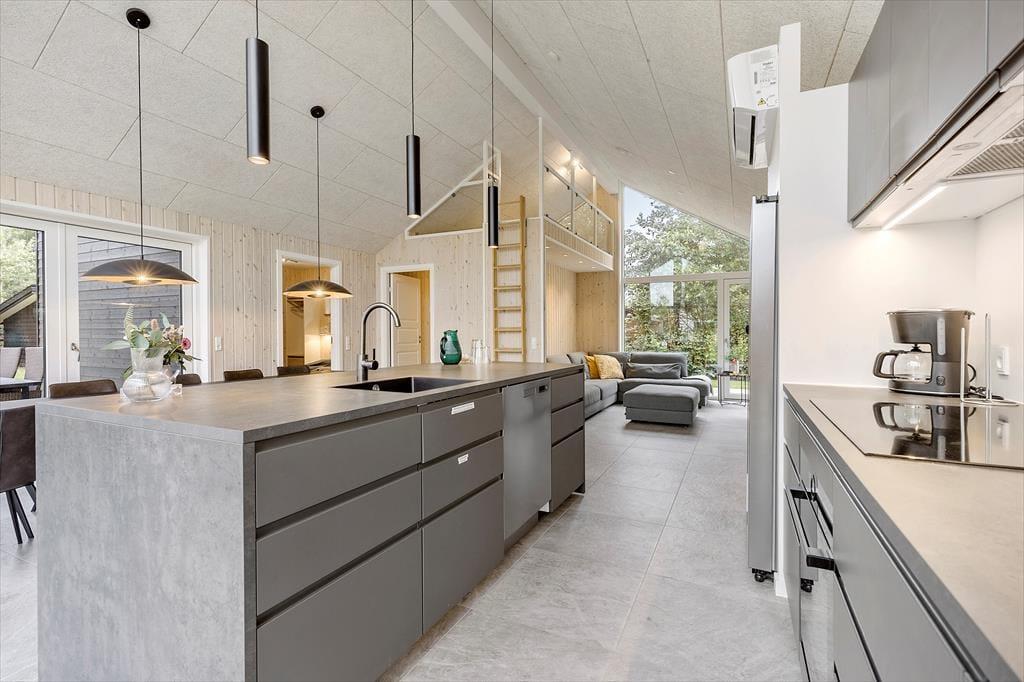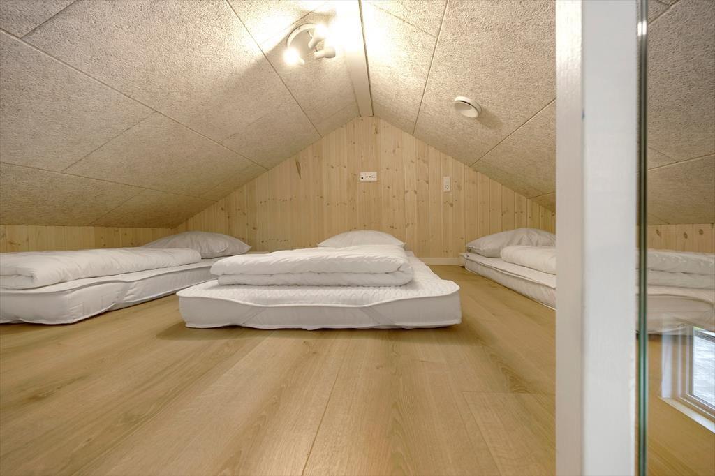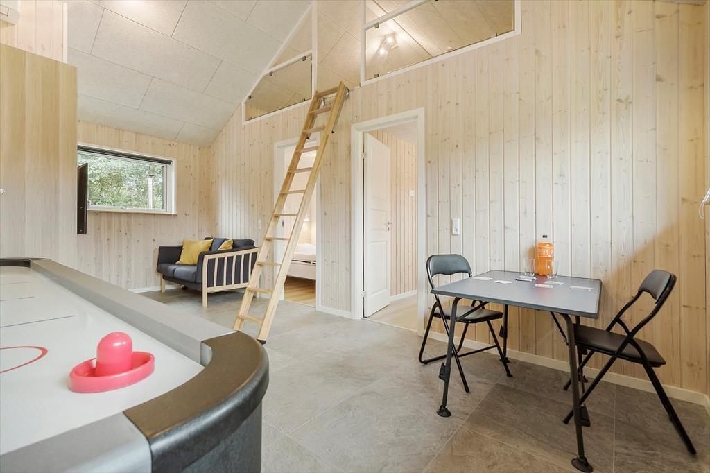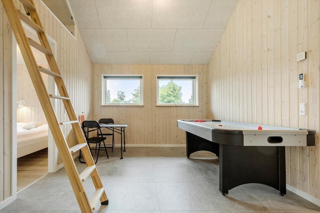 Husets hjerte er det lækre køkken/alrum, som er kombineret med en lys og indbydende spiseplads samt hyggelig og "huleagtig" opholdsstue, hvor I kan samle jer om spil og hygge, læse bøger eller se en god film på Tv´et. Som prikken over i’et kan I tage en dyst i air hockey i aktivitetsrummet, hvor der i øvrigt er endnu et tv.