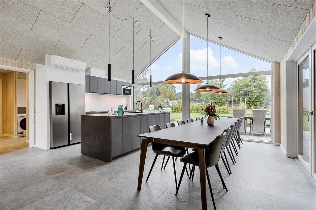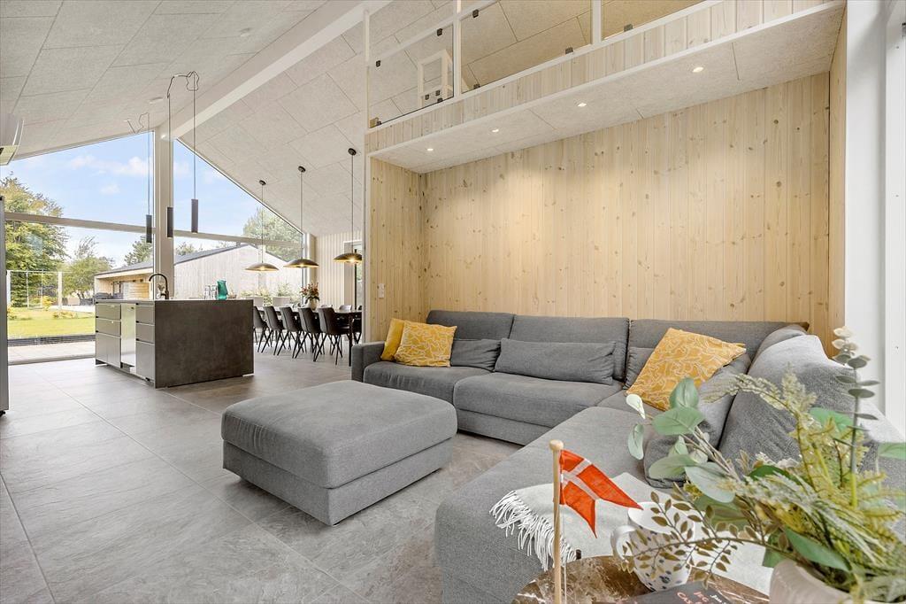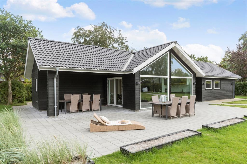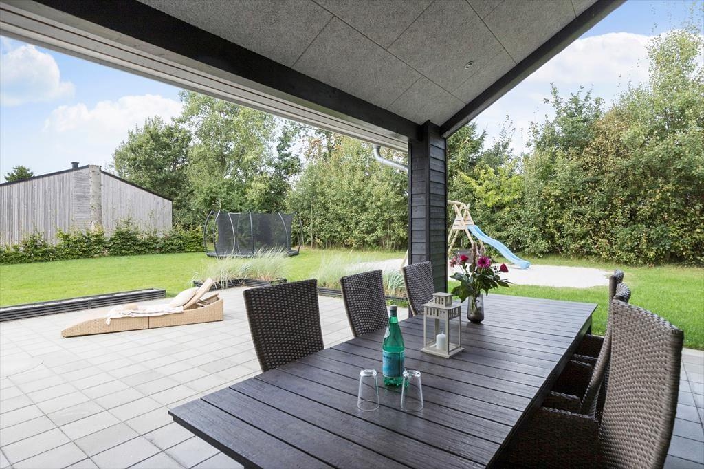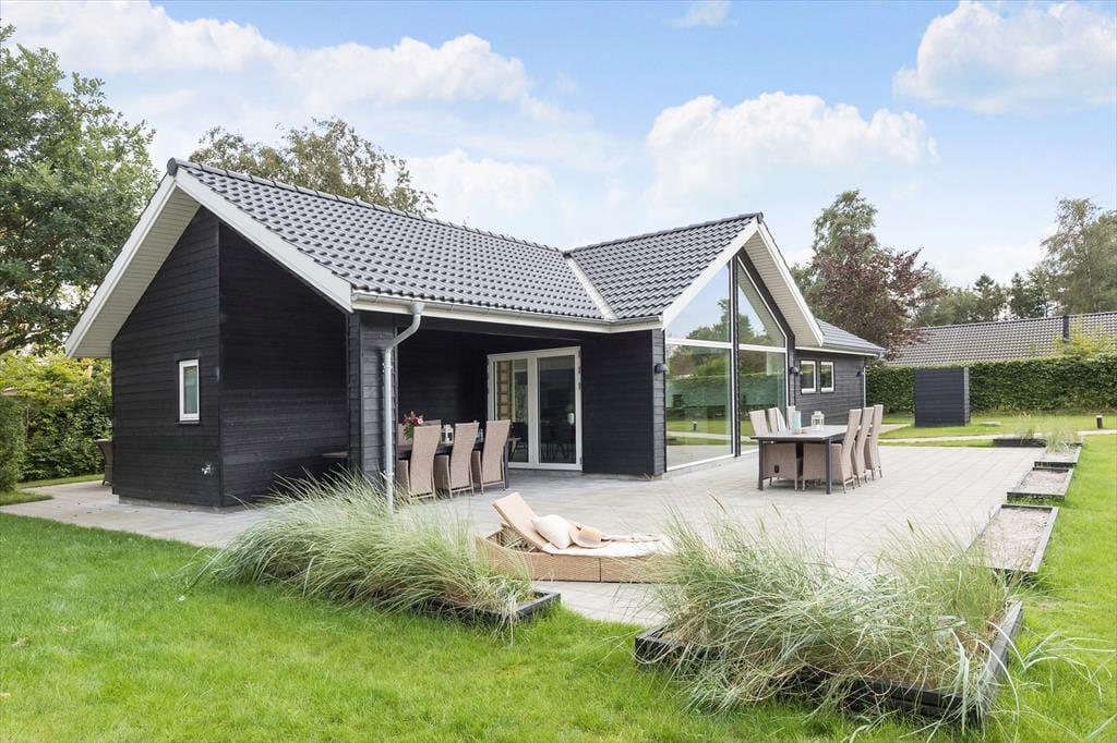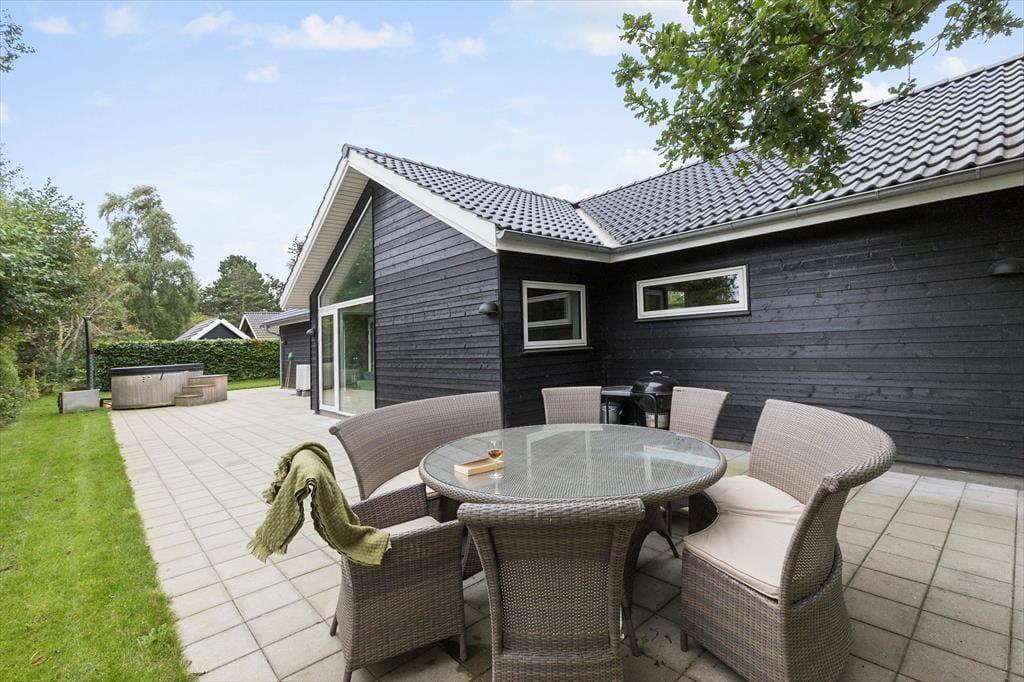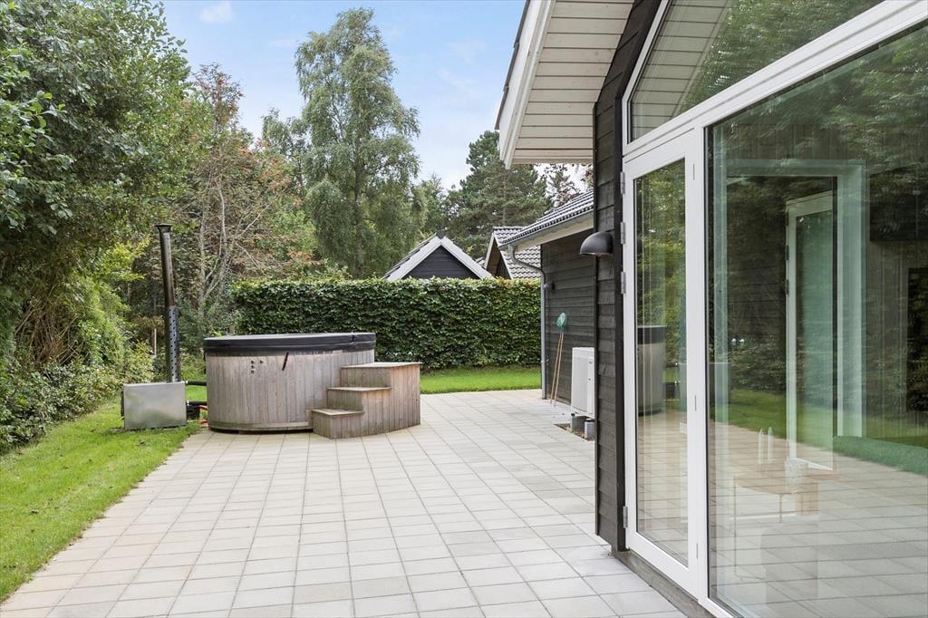 Nyd livet udenfor Forestil dig en solrig sommerdag, hvor du træder ud på en stor, flot fliseterrasse, der breder sig rundt om det meste af sommerhuset. Du kan næsten mærke varmen fra stenene under dine fødder, mens du går hen til det hyggelige loungeområde. Her kan du læne dig tilbage, måske med en god bog eller bare lytte til fuglene, der kvidrer.