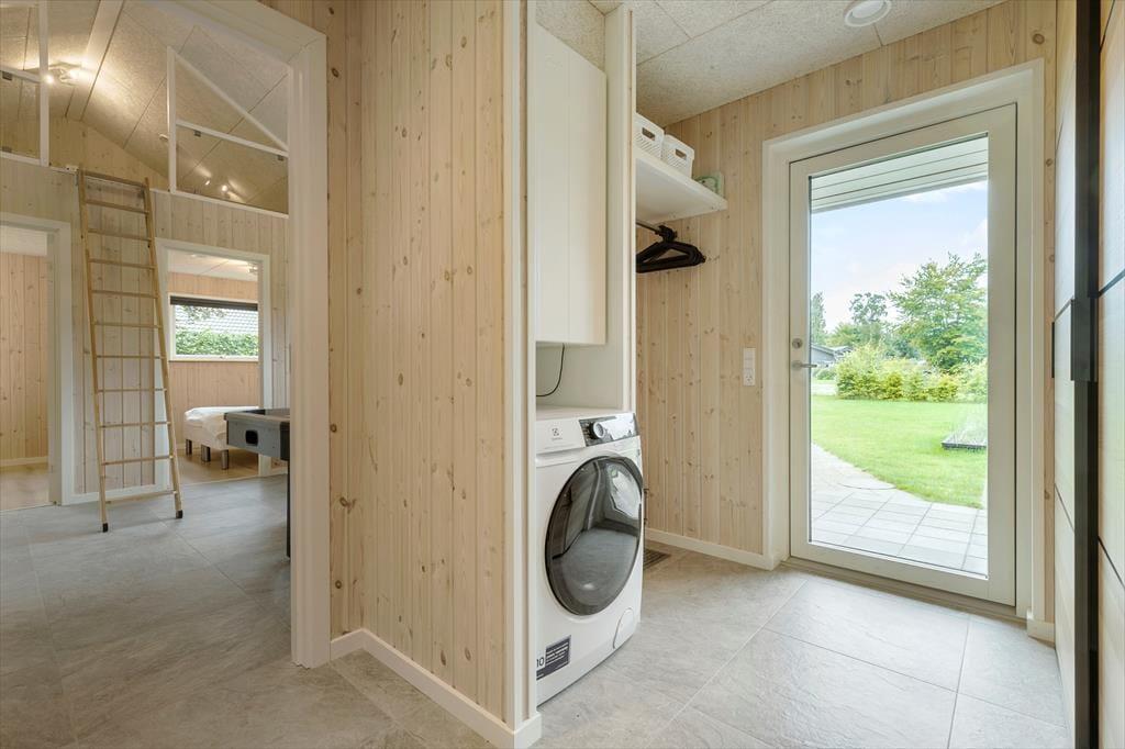 Huset har to moderne badeværelser, som giver komfort og bekvemmelighed under hele opholdet samt praktisk bryggers med vaskemaskine. 2 varmepumper samt gulvvarme i hele huset fra Genvex. Dette feriehus er en perle ved Fjellerup Strand, som indbyder til både afslapning og sjove aktiviteter - både sammen og hver for sig.