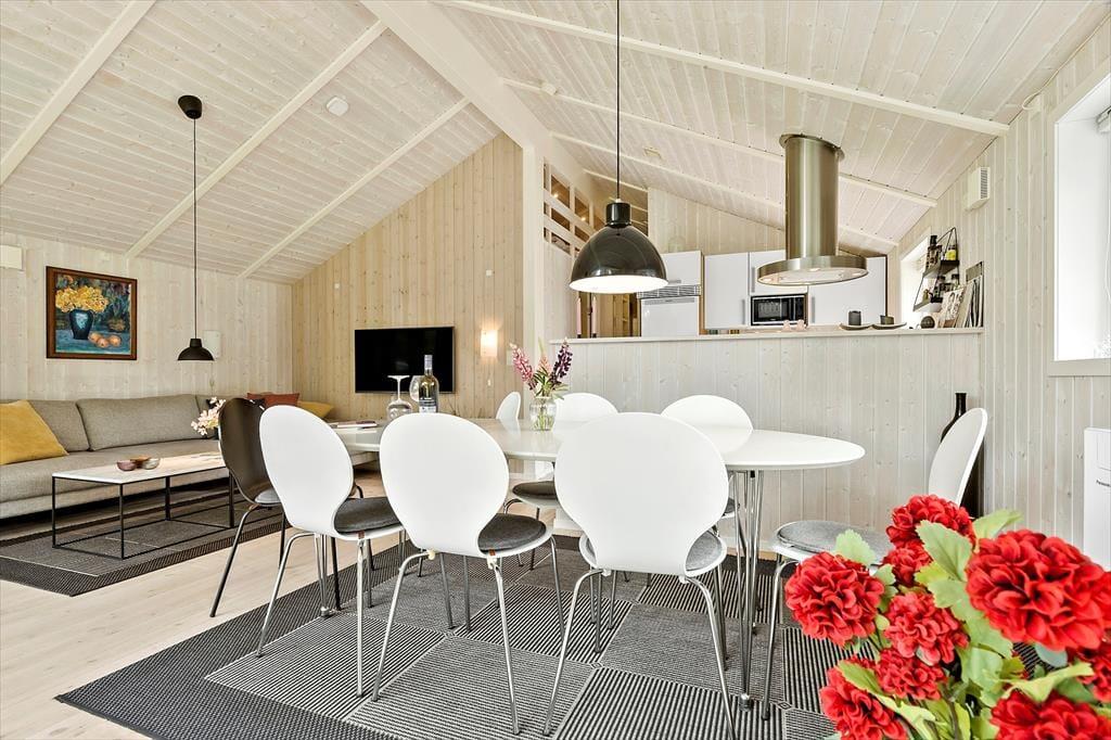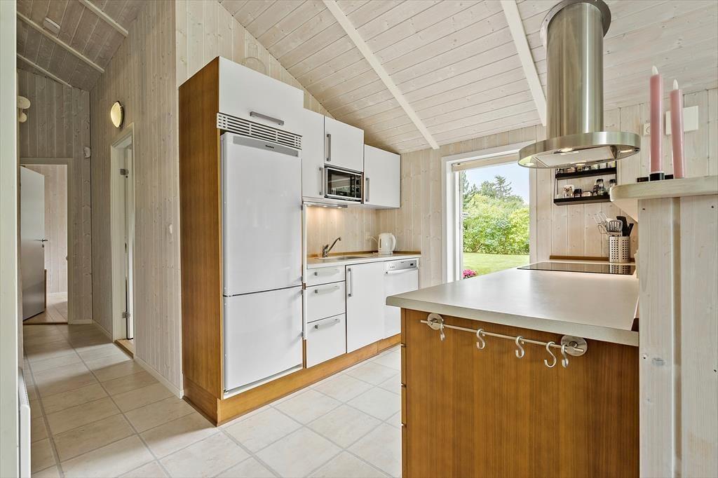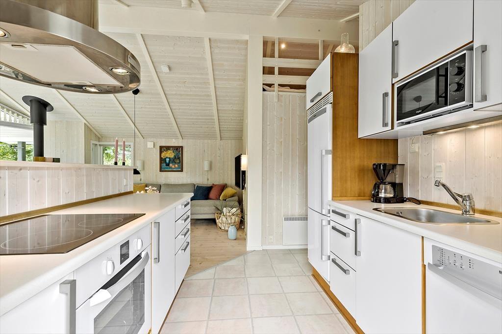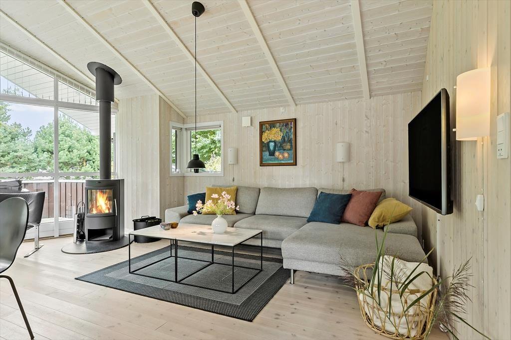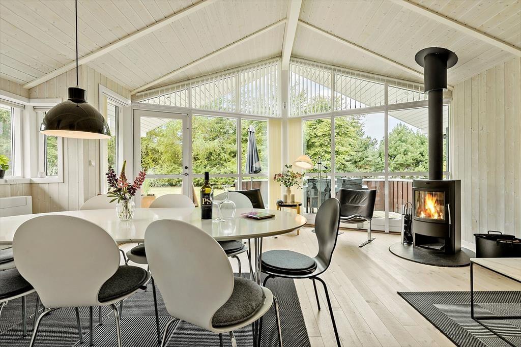 Velkommen indenfor Tænk dig at træde ind i et dejligt og velholdt sommerhus, hvor loftet strækker sig op mod himlen, og store vinduer lukker naturens dejlige lys ind. Her får du en følelse af ro og åbenhed, og du bliver straks mødt af husets rummelige atmosfære. Køkkenet, adskilt fra spiseafdelingen med en halvmur, er ideelt til at forberede feriemåltider, mens du stadig er en del af samtalerne om spisebordet og stuen. I stuen kan du slappe af foran brændeovnen, der spreder en hyggelig varme, mens flammerne knitrer. Læs den bog, du aldrig fik læst, se lidt tv, spil med børnene eller læg dig på sofaen – tag en lur eller kig op i loftet. De tre dejlige værelser og hemsen gør godt for feriesøvnen, mens det nydelige badeværelse fuldender oplevelsen af komfort og velvære. Dette sommerhus er et sted, hvor du kan skabe uforglemmelige minder – et sted, der både byder på lys, rummelighed og den ægte sommerhusstemning.