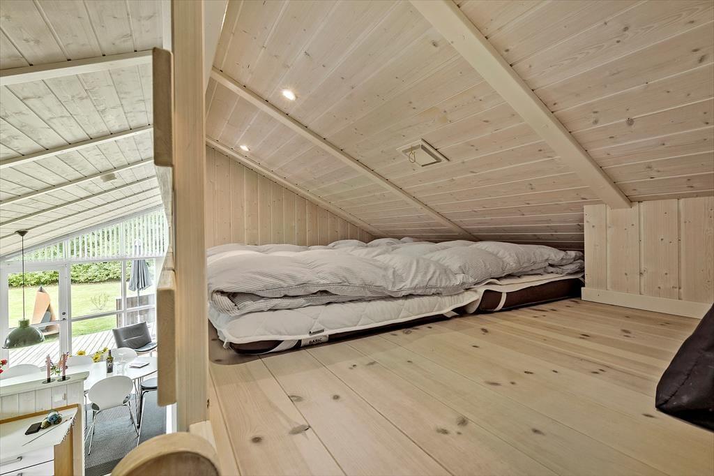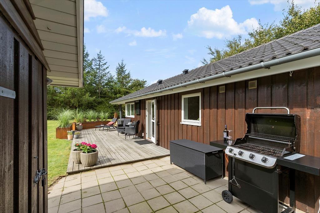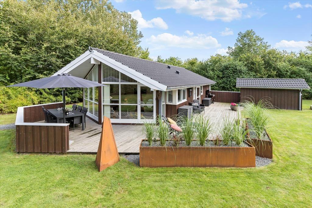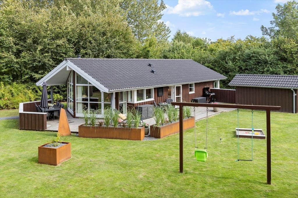Nyd livet udenfor I en dejlig sommerhushave, hvor børnelatter fylder luften, og legene aldrig slutter. En stor græsplæne breder sig ud foran jer – perfekt til boldspil, løb og leg. Gyngestativet er klar til at svinge børnene højt op mod himlen, mens sandkassen venter på små hænder, der ivrigt bygger slotte og sandkager. Haven er ikke helt lukket, men omkranset af smukke træer, som skaber en dejlig oase for hele familien. Dejlig delvist overdækket terrasse, dejlige havemøbler, et par liggestole samt grill og havepejs. Kun 700 meter væk finder I den herlige og børnevenlige badestrand, hvor sandet er blødt og vandet er lavt. Nyd også en stor isvaffel fra ishuset eller få en god middag på en hyggelig restaurant. El lader sørger for, at bilen er tanket op og klar til morgendagens oplevelser. Sommerhusområdet har også fælles legeplads, der ligger lige over vejen og hvor børnene kan møde andre børn.