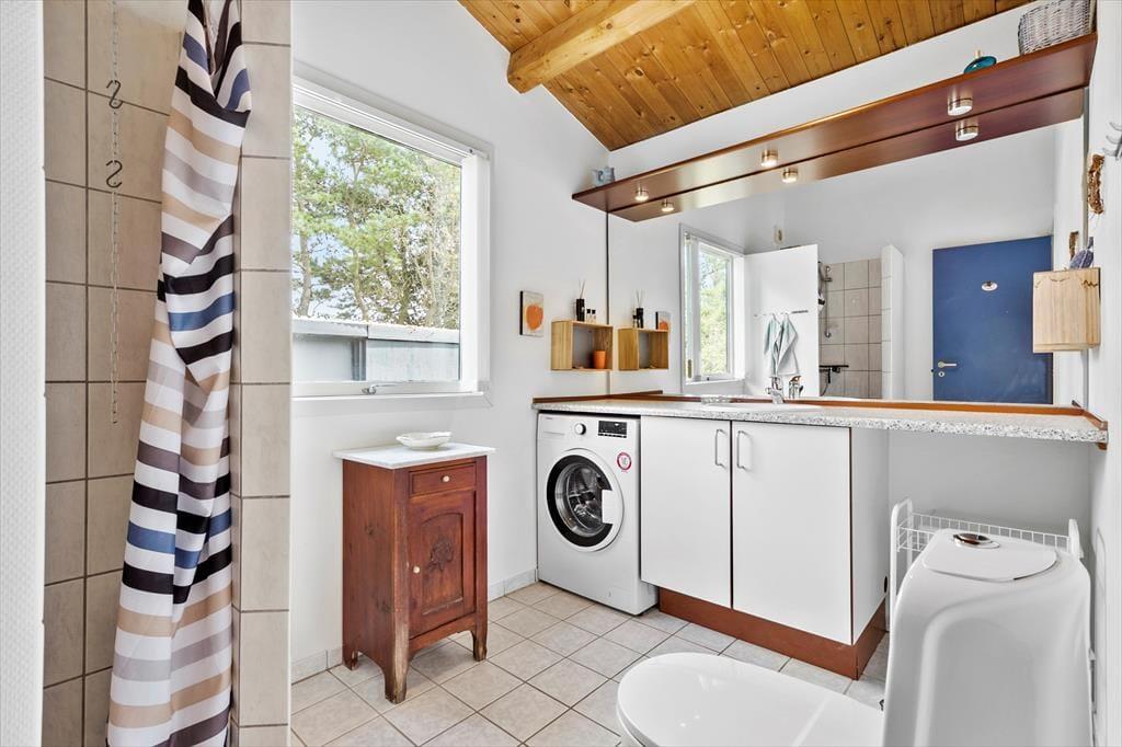 Badeværelset er som det skal være og der er vaskemaskine, som gør ferien praktisk. Dette er det perfekte sted for en afslappende ferie tæt på naturen og havet, hvor både nærvær og hygge er i højsædet.