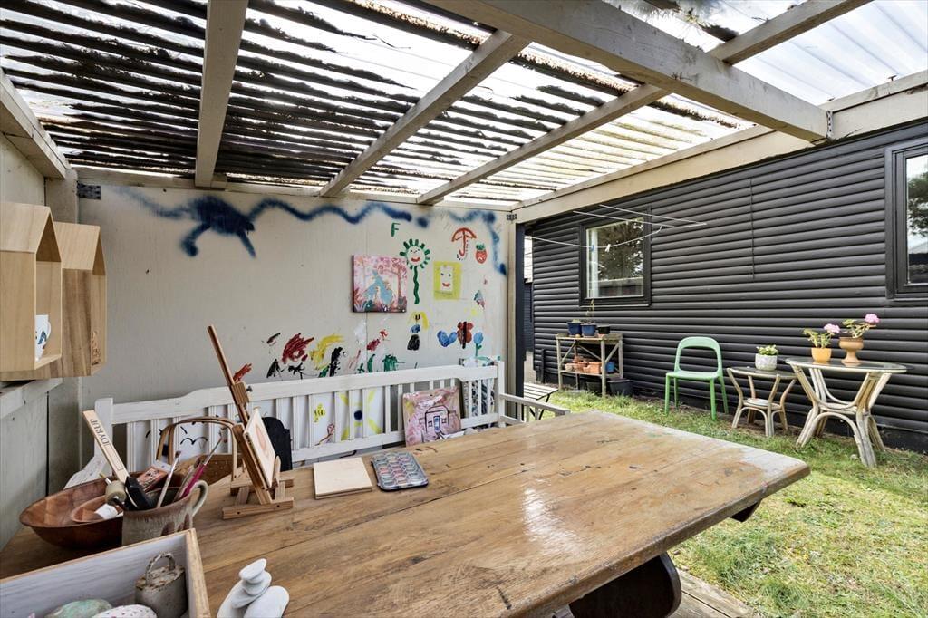 For de kreative sjæle er der en overdækket, udendørs ”sommerhusmalerværkstedsterrasse”, der tilbyder et inspirerende miljø for de yngste og kreative. Så husk malergrej og håndarbejde - Sten og muslingeskaller finder du nemt på stranden. Det er det perfekte sted at lade kreativiteten flyde og fange øjeblikkene fra din ferie i kunstværker.