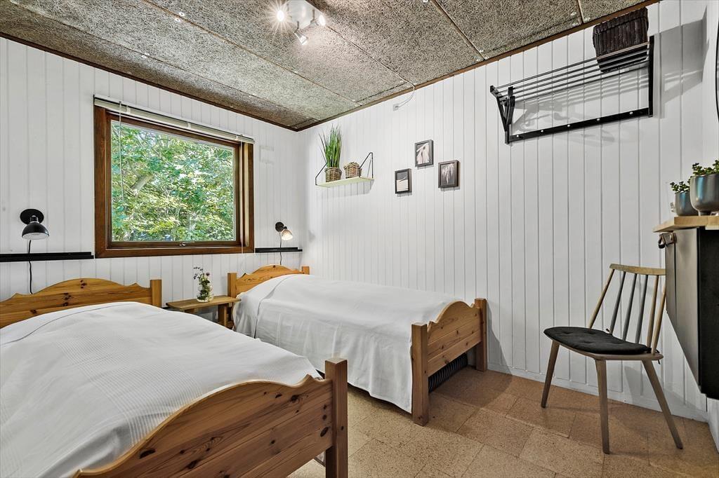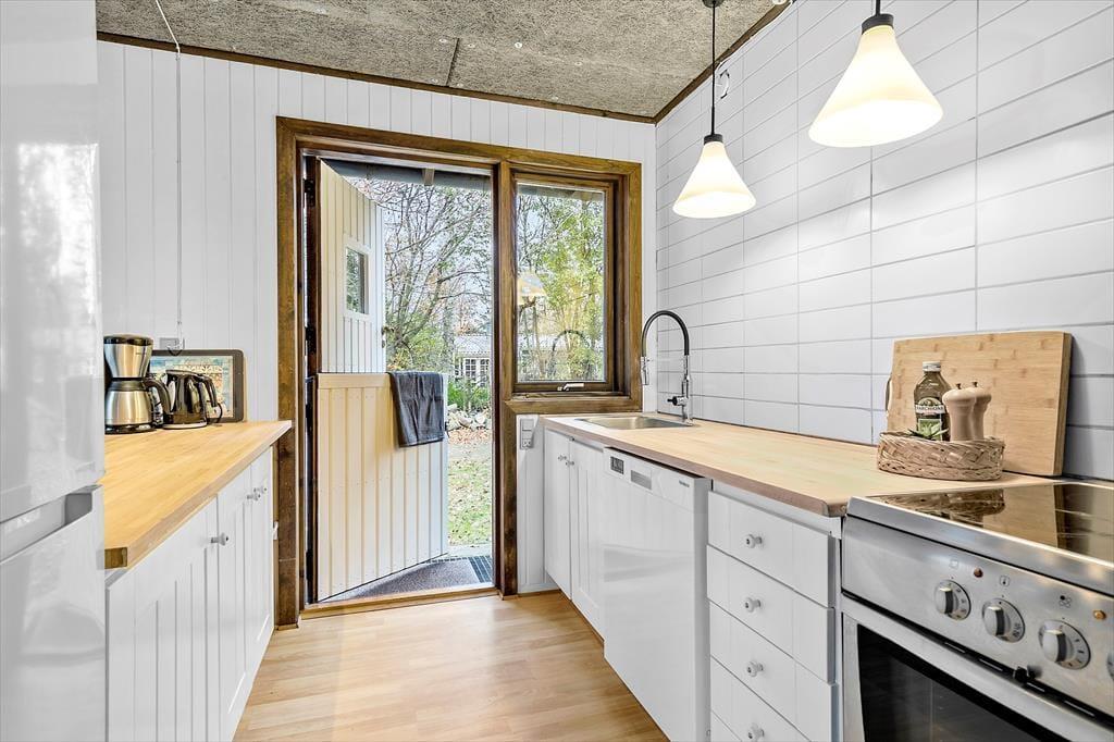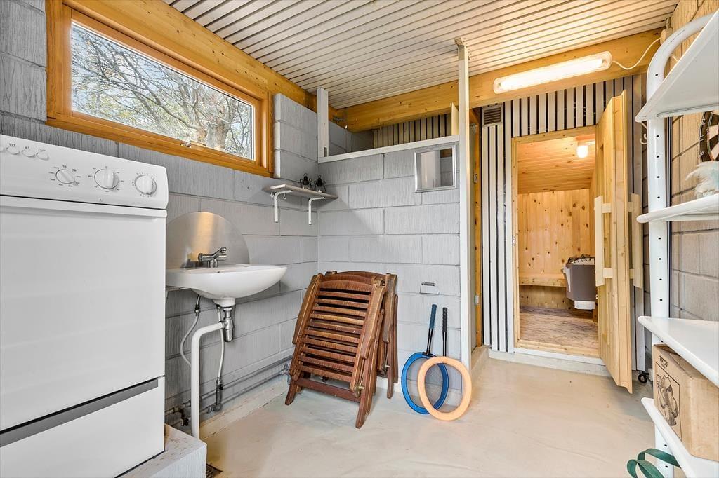 Velkommen indenfor i et fint og hyggeligt hus, der er praktisk, børne- og hundevenligt. Her er god plads til afslapning og masser af gode stunder. Det lyse køkken med stalddør til haven hænger godt sammen med spisekrogen og fortsætter til den hyggelige stue, hvor I kan samle jer omkring brændeovnen eller hygge jer med en god film, bog eller spil. I kan også træde direkte ud på terrassen og videre til den store, indhegnede have. Få en god nats søvn efter dagens aktiviteter i et af de 3 soveværelser og syng en morgensang under bruseren i badeværelset, der har, hvad I behøver. I entreen er der god plads til barnevogn, hundekurve og overtøj, så I jer hjemme fra første øjeblik. I skuret venter ekstra forkælelse som sauna og et ekstra brusebad – ideelt til at varme sig op efter en frisk dag ved havet. I skuret kan du også sætte en vask over.